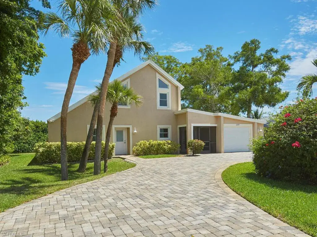 Price Reduced – Priced to Sell! Gulf-Access Boating Home in the Heart of Naples. Attention boaters! Don’t miss this rare opportunity in Coconut River—a highly desirable boating community offering Gulf of Mexico access via the scenic Gordon River. This charming 3-bedroom, 3-bathroom home offers over 1,800 square feet of living space on an oversized quarter-acre lot (120 ft deep x 90 ft wide) with plenty of room to add a pool. The thoughtfully designed layout includes two spacious master suites, a den/guest room with en-suite bath, and a beautifully renovated kitchen and bathrooms. The vaulted-ceiling great room features a cozy fireplace and a spiral staircase leading to a catwalk and second-level master with private balcony. Step outside to a two-story screened lanai and a lush backyard filled with mature avocado, mango, banana, and grapefruit trees—perfect for outdoor living. Enjoy peace of mind with impact windows, a newer seawall, and a private boat dock. Additional features include an oversized one-car garage and a circular paver driveway with ample parking.