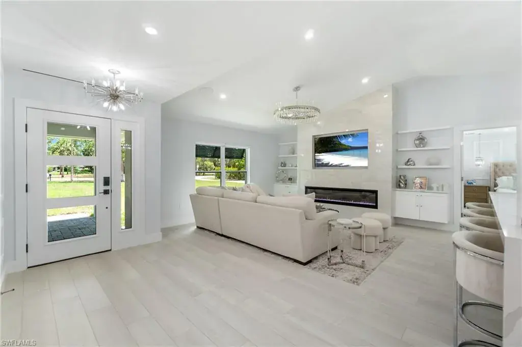 Additional luxury features include impact windows, a tankless water heater, and built-in indoor/outdoor speaker systems. Set on a 150-foot-wide lot surrounded by lush, mature landscaping, this estate offers complete privacy and the freedom of no HOA—an unparalleled combination of modern luxury and Naples lifestyle.