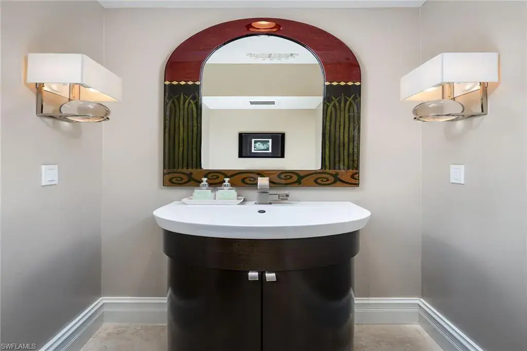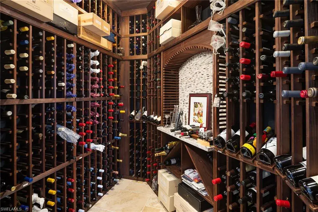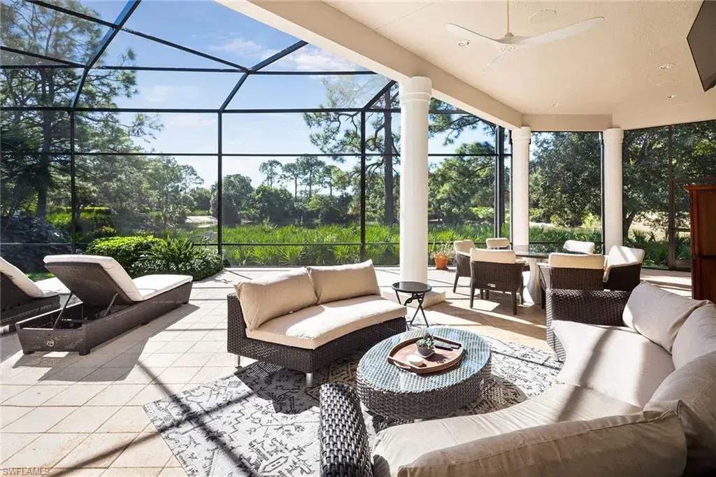 Sophisticated, stylish and sunny retreat describes this beautifully renovated residence on a private cul-de-sac lot with serene southern exposure lakefront setting. This sprawling residence offering over 8,500 square feet in total area is an entertainer’s delight with spectacular foyer entrance with 17-foot ceilings, huge windows, climate-controlled 700-bottle wine cooler with beautiful glass door and great room with big views and impact pocket sliding doors leading to the 2,700-square-foot lanai with ample covered and uncovered entertaining area. The sleek cook’s kitchen offers Thermador appliances, six-burner gas stove, double oven, center island, bar area and huge walk-in pantry. Many improvements include four stunning renovated baths, exquisite light fixtures, new roof and screened enclosure in 2018, two new water heaters in 2022, marble floors in living area and guest suite, wood floors in owner’s suite and study, generator, gas fireplace, built-in safe, Sonos sound system and speakers throughout living area, Ring security and summer kitchen with Artisan grill and sink. The large owner’s suite offers beautiful views, two walk-in closets, large bath with private garden setting with inside and outside showers. Huge private guest suite upstairs with large screened and open balcony overlooking the lake. Long driveway leads to the fabulous oversize 927-square-foot garage with built-in cabinets, third bay for golf cart and car lift for the auto collector. Immediate golf membership available with purchase, negotiable furniture package and pristine condition make this home move-in ready. Collier’s Reserve’s natural beauty of 450 acres was recognized as the world’s first Audubon Signature Sanctuary community and offers world-class club amenities, championship golf, active tennis, pickleball and bocce, newer fitness center, excellent food with friendly staff, and overall superb location in Naples, less than two miles to Vanderbilt Beach.