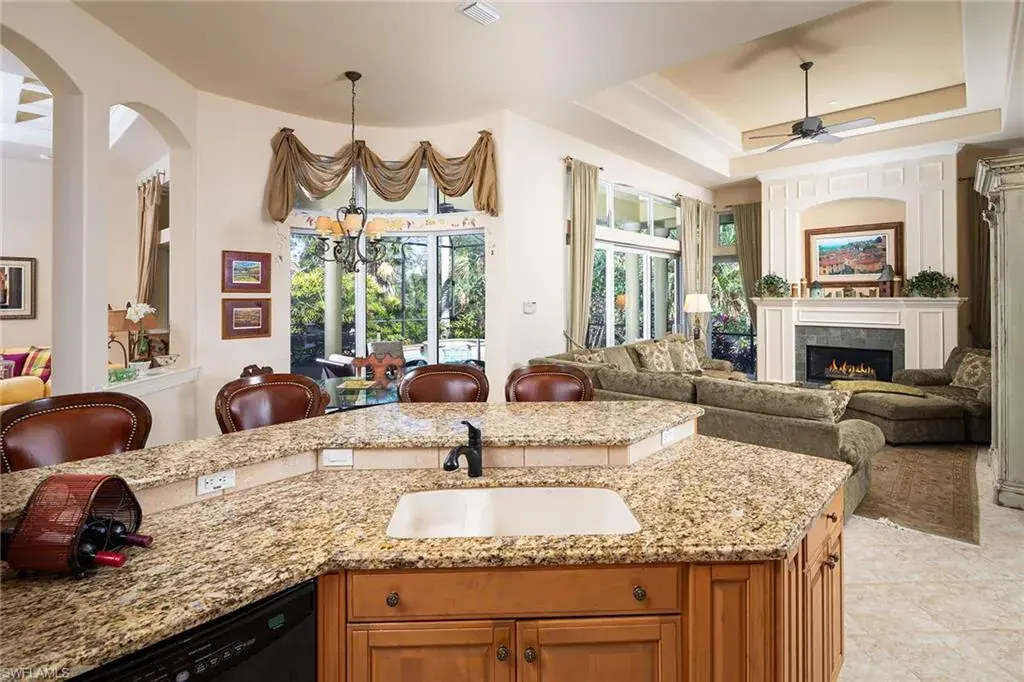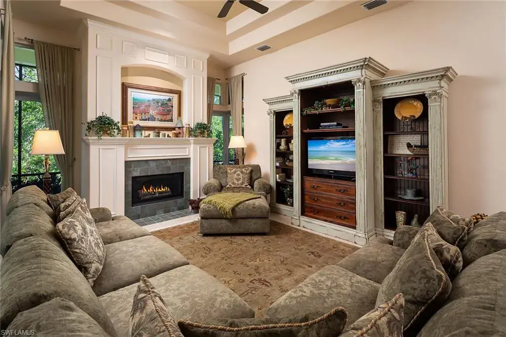 This sprawling, immaculate five-bedroom plus study home is a gem, offering beautiful architectural detail in the heart of Collier’s Reserve on private half-acre lot. Immediate full golf membership is available upon closing. The many features include impact windows and sliders, new screen enclosure in 2019 and new air conditioner in 2021. The home was built in 2001 at a high elevation and has never experienced flooding, according to the owner. Meticulously maintained, this elegant home offers soaring 14-foot ceilings, beautiful coffered ceilings and millwork, providing a blend of luxury, comfort and convenience. Large owner’s suite and two guest suites on the first floor, each providing access to charming private terraces. The home also boasts a fabulous second story featuring two private guest rooms and bath. The main gathering room is complete with fireplace, providing a warm and inviting ambiance. The large laundry room offers generous built-ins. Collier’s Reserve’s natural beauty of 450 acres was recognized as the world’s first Audubon Signature Sanctuary community and offers world-class club amenities, championship golf, active tennis, pickleball and bocce, newer fitness center, excellent food with friendly staff and overall superb location in Naples, less than two miles to Vanderbilt Beach.