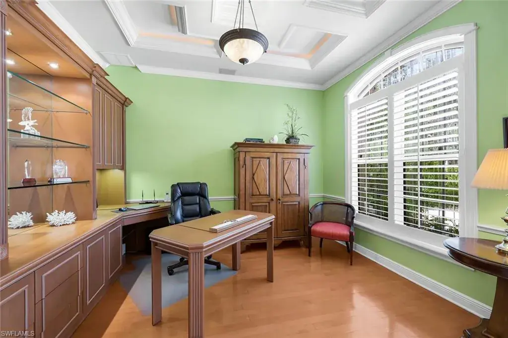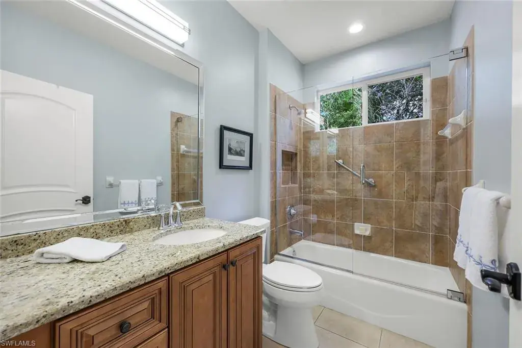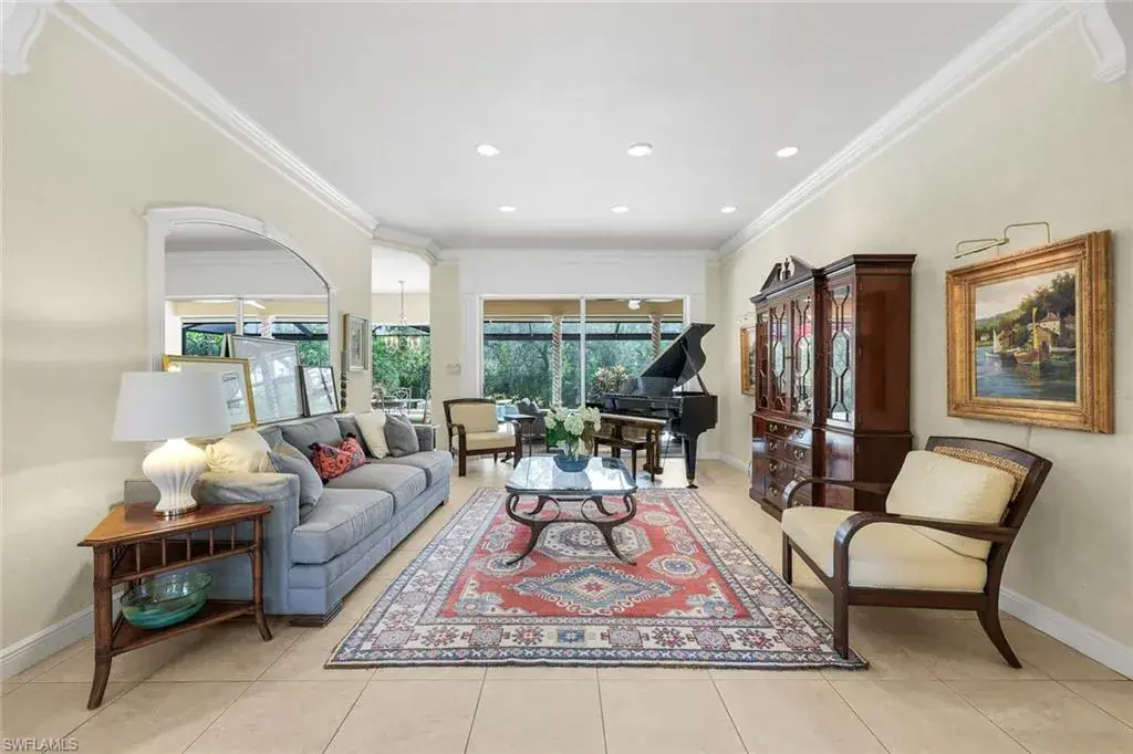On the Sunny Side of Life ~ Tucked at the end of a quiet cul-de-sac, this residence offers the rare combination of privacy, space, and a premier southern orientation. Nestled on a generous half-acre with 185 feet of frontage against a backdrop of lush tropical foliage, the home lives like a tranquil retreat designed for both relaxation and entertaining. Inside, the light-filled four-bedroom-plus-den/office floor plan flows seamlessly, anchored by a spacious island kitchen with wood flooring, custom wood cabinetry, stainless steel appliances, and ample pantry space. Remodeled baths and a redesigned laundry room feature granite-topped, soft-close cabinetry elevating everyday living, while a gas fireplace adds warmth to the family room. Outdoors, the 33-foot lap pool and spa command attention, fully renovated and surrounded by an expansive new sun-soaked deck and panoramic-view lanai enclosure—ideal for morning swims or relaxed evenings under the stars. Practicality pairs with peace of mind through abundant storage, a full three-car garage, and recent updates such as a new roof, whole-house impact-rated storm protection, and a renovated upper balcony. At an enviable 11.3 ft elevation, this home is perfectly suited for the Southwest Florida lifestyle. Located in the prestigious Audubon Sanctuary Club of Collier’s Reserve where world-class golf and active tennis and pickleball programs are coupled with premium amenities, multiple dining options, and a passion for environmental stewardship.