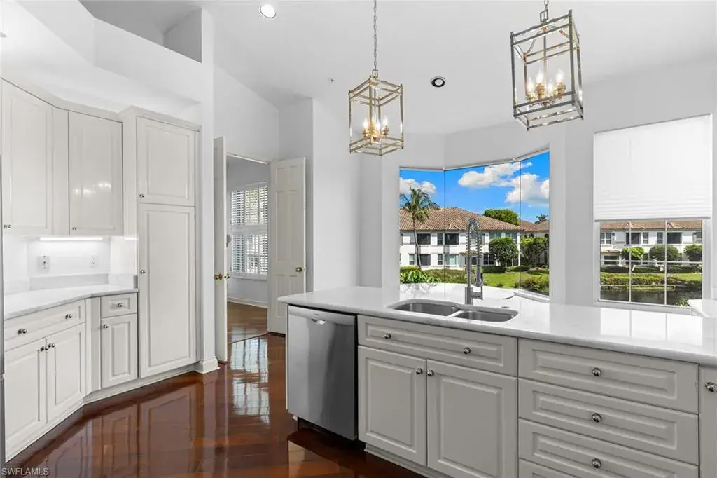In the heart of Park Shore, this beautifully appointed residence offers a bright and spacious upstairs living area, complete with a private elevator, in one of Naples charming and central communities. Just a short distance to the beach and The Village Shops on Venetian Bay, this sophisticated three-bedroom, three-bath home with a one-car garage provides a blend of comfort and convenience. Enjoy the feeling of a newly built home with 10-foot volume ceilings, 8-foot French doors, and spacious lanai offering exceptional privacy. The light-filled eat-in kitchen features a picturesque bay window overlooking lush landscaping and serene lake and fountain views. Residents of The Colonade enjoy an array of amenities including a community pool, clubhouse, and fitness center, ideal for entertaining or relaxing poolside. Positioned between the fine dining, shopping and cultural offerings of Old Naples and Waterside Shops, this home captures the essence of refined coastal living in one of Naples sought-after neighborhoods.