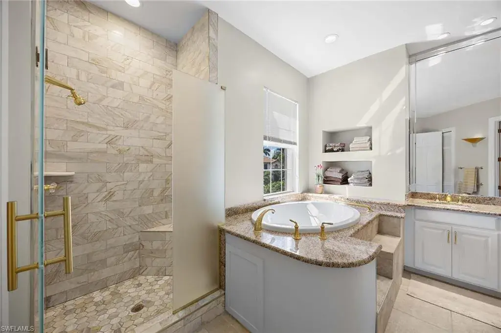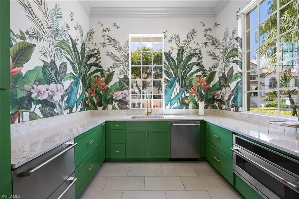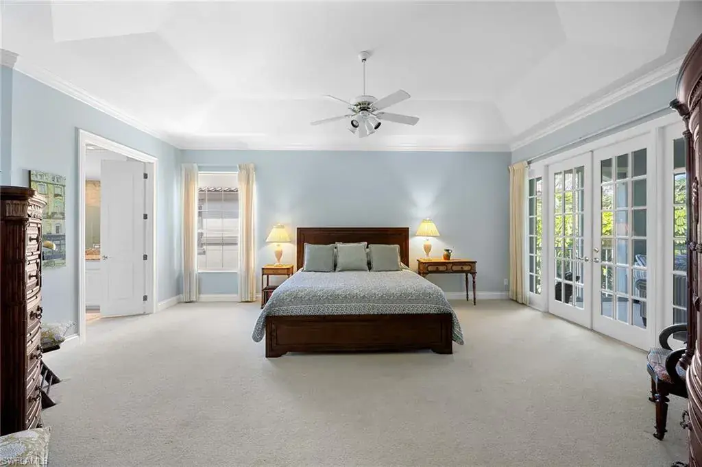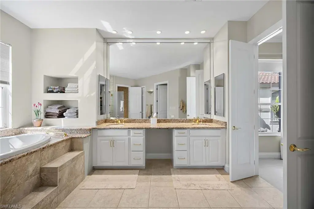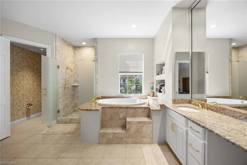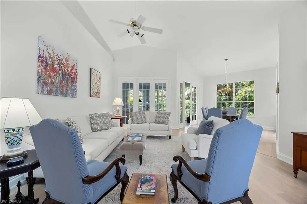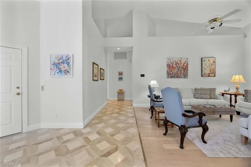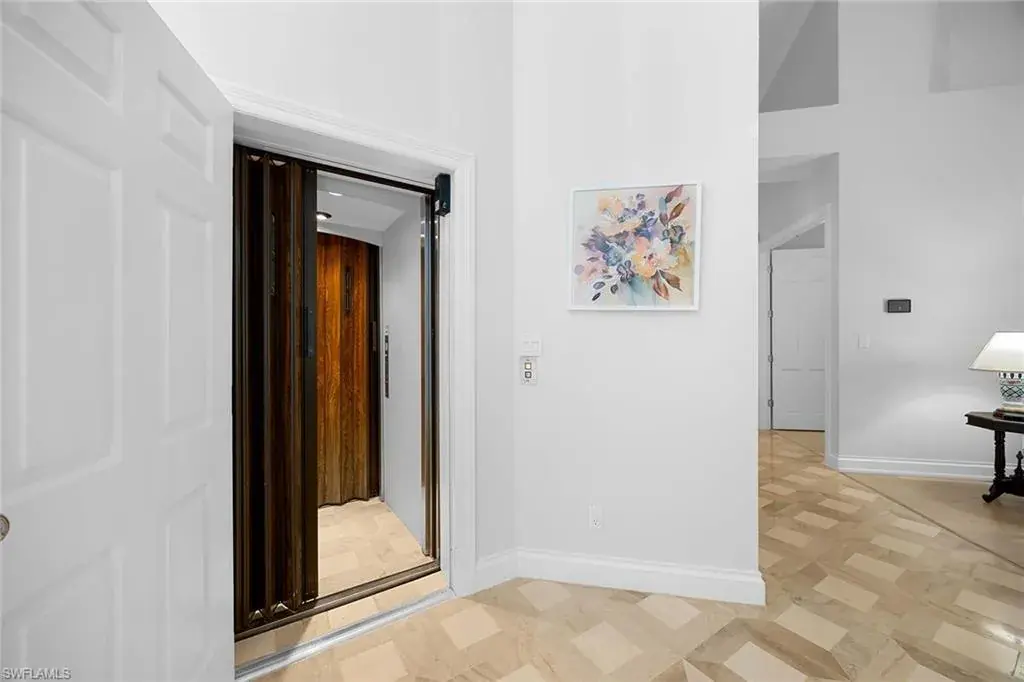 Colonade at Park Shore is the ideal second-floor location in Naples. This spacious residence is great for year-round or seasonal living with three bedrooms, two-and-a-half baths, high ceilings throughout and French doors in the living room, dining room and main bedroom opening onto a light-filled lanai with sliding glass doors and sunrise exposure. A large chef’s kitchen is enhanced with GE Profile Microwave, range, cooktop, refrigerator, large dishwasher and Avalon wine cooler. There are lots of cabinets and countertops as well as marble flooring and a breakfast area with bay window. The main living areas have tile and wood plank flooring, carpeting in bedrooms. The garage has epoxy floors and an elevator and storage room nearby. Across the street is the newly renovated community room and fitness room and a beautiful pool and grill area. Ready to enjoy this season. A Park Shore Association membership is optional at minimal cost and access is a short distance down the street or there is car parking at the beach. Wonderful location!