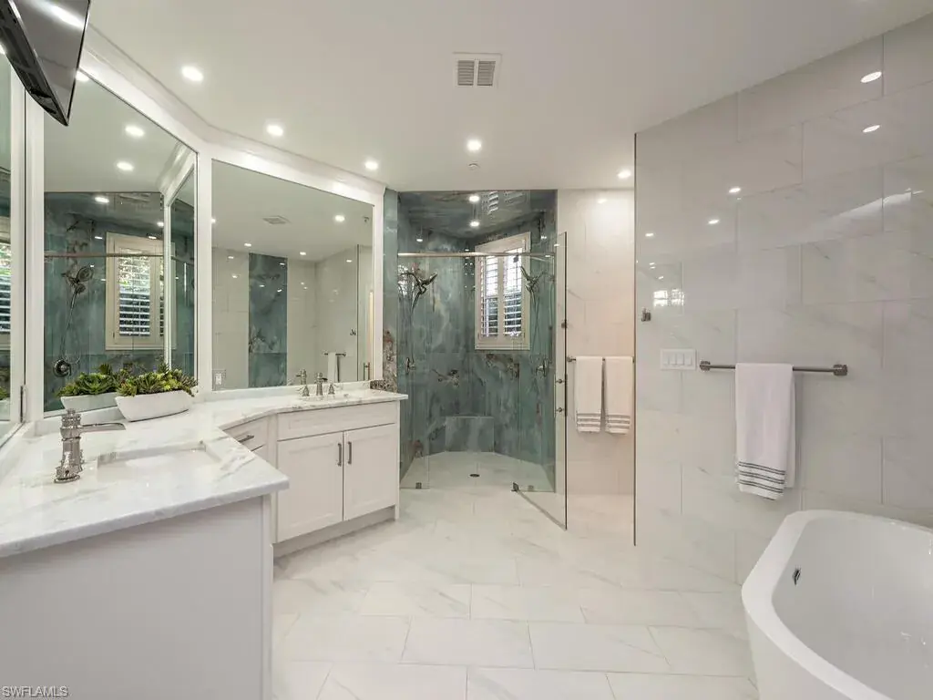 RARE 2 CAR GARAGE, FIRST FLOOR RESIDENCE, IN THE COLONADE WITH THE MOST DESIRABLE LOCATION DIRECTLY ACROSS FROM THE FABULOUS NEWLY RENOVATED CLUBHOUSE, FITNESS CENTER & BBQ AREA. This stunning end unit underwent a 2023 remodel, featuring modern amenities and finishes with an open, spacious floor plan perfect for entertaining family and friends. The primary suite features an impressive recent, June 2024, full renovation of the en suite bathroom. Additional features include two guest bedrooms, additional full bath, laundry room, new AC and water heater. This popular Barcelona floor plan is ideally situated right across from the newly renovated clubhouse, and in the front of the community, offering quick access to the Park Shore Private residents beach, and Venetian Village. You will LOVE the few short steps to the resort style community pool, hot tub, incredible new clubhouse with private kitchen, new BBQ area, and new state of the art fitness center plus Park Shore residents are also eligible to purchase or lease boat slips in the Venetian Bay Yacht Club. Your dream vacation home awaits.
