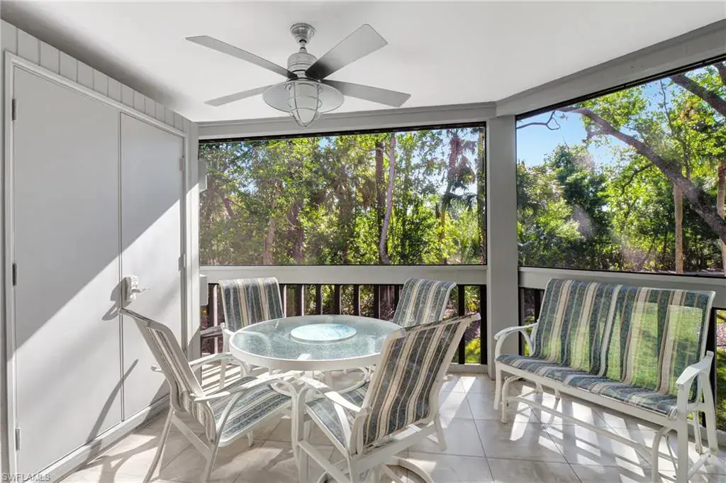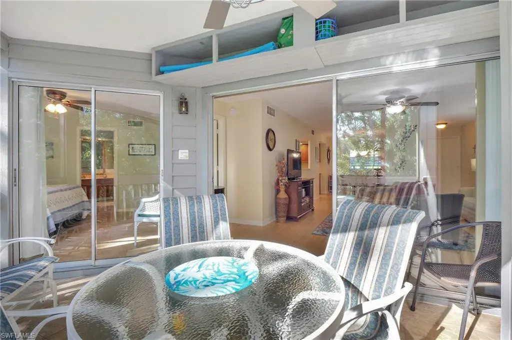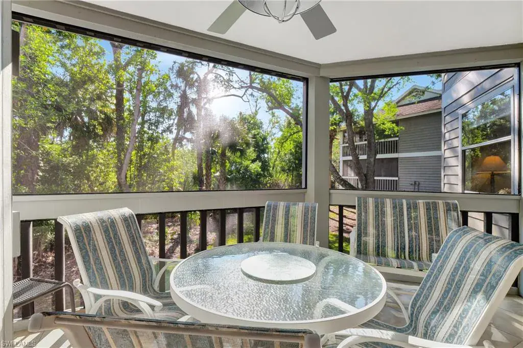 This first floor 2 bedroom, 2 bath has easy access ramp to condo level and steps away from pool. Privacy and peaceful wooded views. Brand new Air conditioning and W/H systems, 2 weeks old. Both bathroom showers have been recently remodeled, tiled, walk-in. Good-sized lanai has been all re-screened. Kitchen features stainless appliances, tray ceiling and added recessed lighting. Open floor plan with Bamboo flooring in entry, dining and living area. Washer/dryer 2022. Storage for bikes, beach chairs etc. This community the Colony at Wiggins Bay has a pool and grill, the parking spot is end under cover carport. many extra guest spots. The Tarpon Beach & Racquet Club is located inside grounds of Wiggins Bay for a social membership if looking for tennis, dining, fitness, boat taxi to beach, Tiki bar and resort pool. Ask about details/cost to join. Many social added activities for the season.