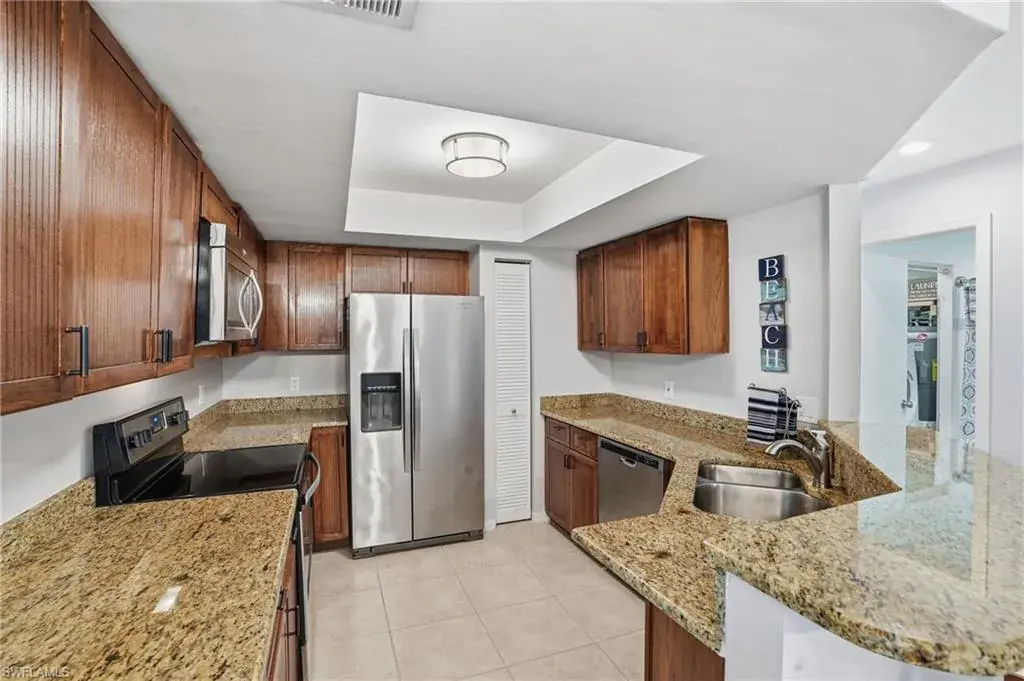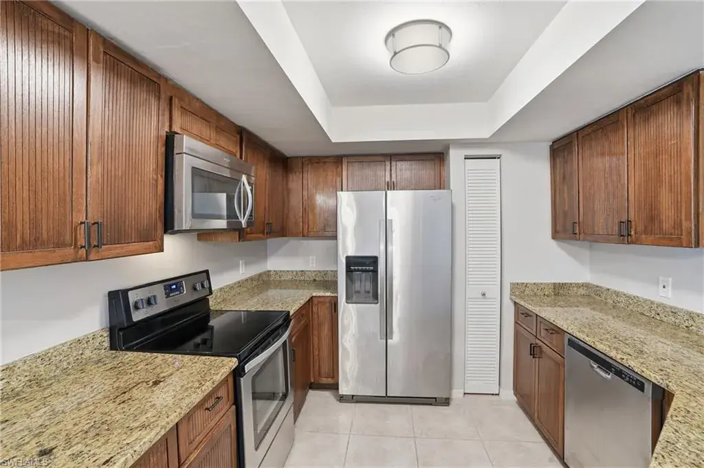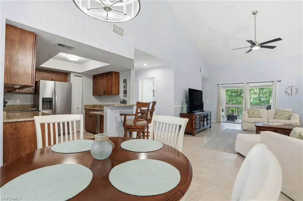 622 Wiggins Bay Drive Unit C-22 in Naples, FL 34110 is a second-floor, 2-bedroom, 2-bath condominium (built in 1987) spanning about 1,390 sq ft. Nestled within the lush, gated Colony at Wiggins Bay community, it overlooks preserved woodlands and features a screened lanai for peaceful relaxation. The interior includes tile flooring, vaulted ceilings, a well-appointed kitchen with stainless-steel appliances, and in-unit laundry for comfort and convenience. Recent upgrades such as a newer A/C and water heater add modern efficiency, while a dedicated covered carport provides parking. Residents have access to a resort-style community pool and BBQ area, and can optionally join the nearby Tarpon Cove Yacht & Racquet Club for amenities like tennis, fitness, dining, a tiki-bar pool, and beach shuttle service. Its location offers serenity while still being close to shopping, dining, and Gulf-accessible nature.