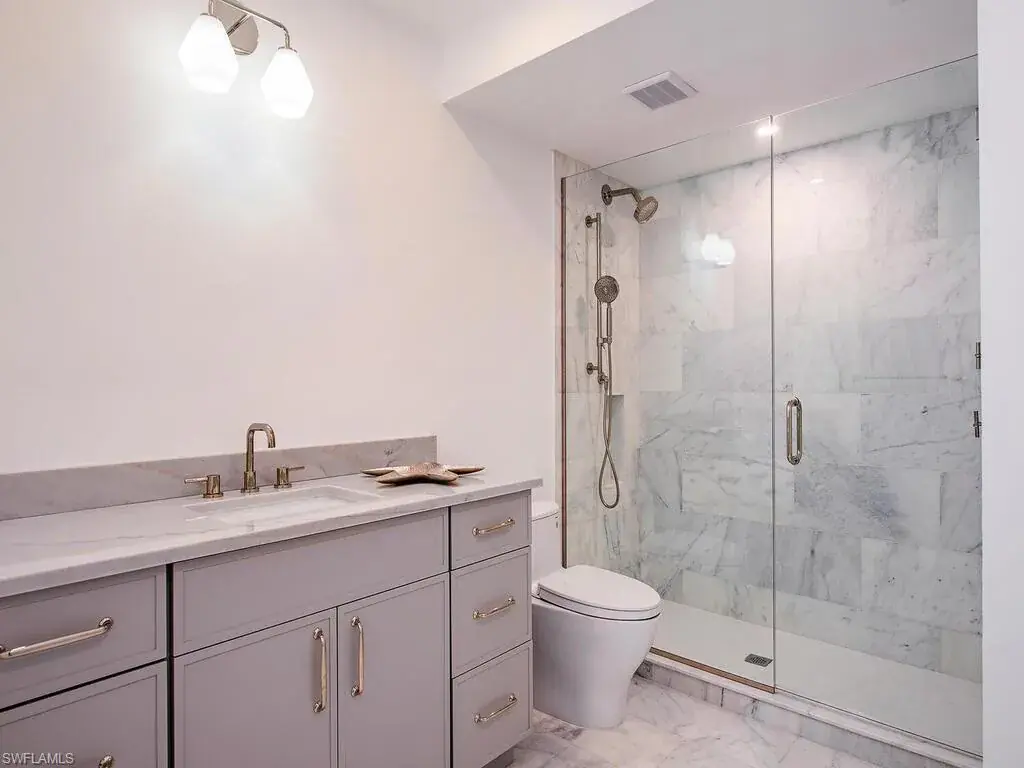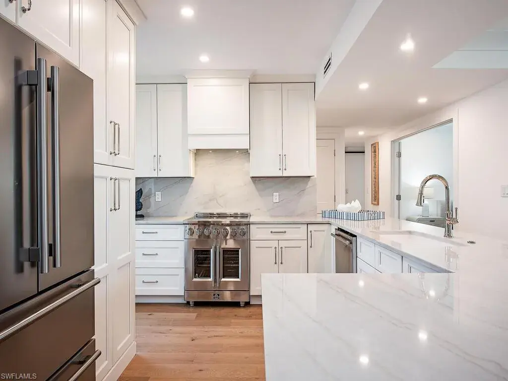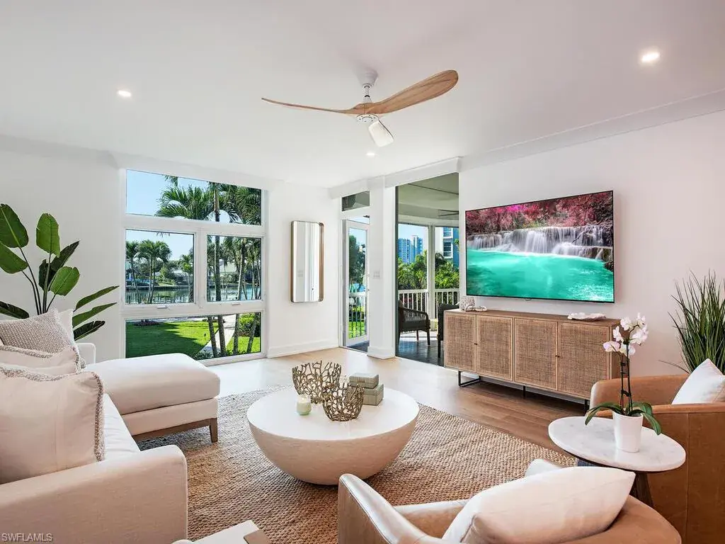 Welcome to this fully renovated 2nd floor residence overlooking the glistening Venetian Bay! The residence boasts 3 bedrooms all overlooking the bay, high end finishes throughout including wide plank white oak flooring, all marble bathrooms, quartzite Countertops, Forno appliances, along with a generous oversized screened in balcony offering endless stunning sunsets! You are a short stroll over to the shops at Venetian Village with 7 fine and casual dining options, a quaint morning coffee shop, Ben and Jerry’s ice cream shop, and Park Shore Marina!!! There is a boat slip available which can be purchased if one desires. The Park Shore private guarded and gated beach access is available for a nominal fee as well. The location is unmatched being perfectly situated between the Ritz Carlton and downtown Naples. Not to forget to mention it is a pet friendly community!
