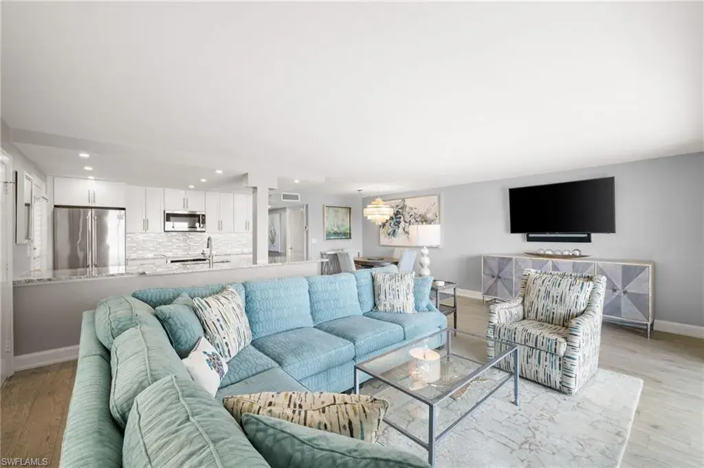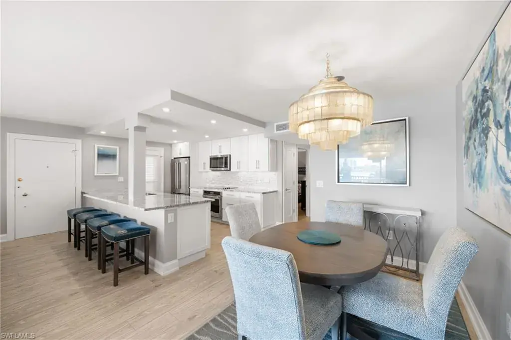 For boating enthusiasts, the unmatched no-bridge access to the Gulf of Mexico makes this community a true boater’s paradise, and boat slips are available for lease. This beautifully updated two-bedroom, two-bathroom condo offers breathtaking, expansive bay views and abundant natural light throughout. The bathrooms have been fully renovated with marble floors. The open kitchen overlooks the living space and showcases incredible water views along with a breakfast bar, KitchenAid appliances, and granite countertops. Low condo fees add exceptional value by covering A/C and water heater replacements when needed. The property also includes assigned covered parking, ample guest parking, and eligibility for the Moorings Beach Club membership. Being sold fully furnished, the residence is move-in ready so you can start enjoying immediately. Ideally located just a short stroll from the pristine beach, the condo is also conveniently close to Venetian Village and offers easy access to downtown Naples, Waterside Shops, and Mercato, providing a wealth of dining, shopping, and entertainment options. Commodore Club II features a two-year-old roof, new elevators, a pool overlooking the bay, and an updated outdoor entertainment area with a Tiki hut, kitchen, and BBQ space. There are no assessments at this time, and quarterly fees remain under $3,800. This exceptional property combines stunning views, high-end updates, and an unbeatable location.