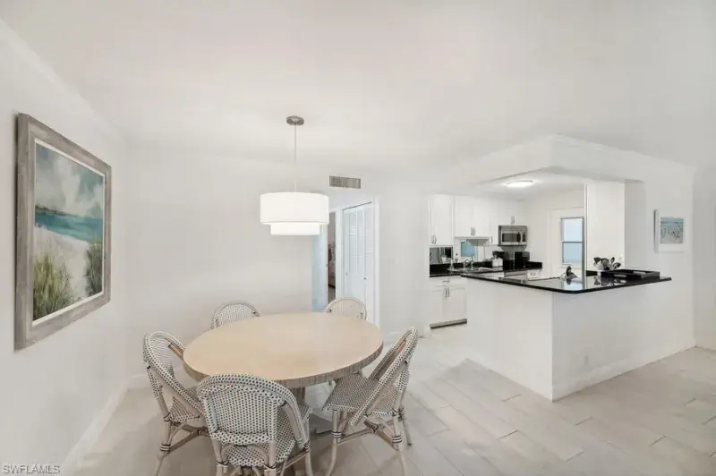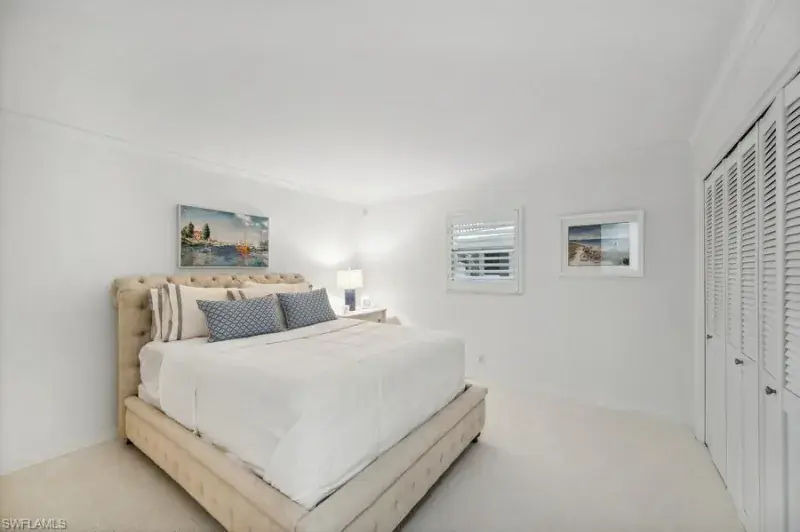 A seamless blend of modern sophistication and coastal charm! Enjoy stunning views from this renovated condo on Moorings Bay with direct access to the Gulf of America. The bright, open floor plan features elegant upgrades with light wood-like tile floors, custom closets, motorized blinds and plantation shutters. Enjoy the convenience of walking to the beach or dining and shopping at the fabulous shops nearby at Venetian Village.