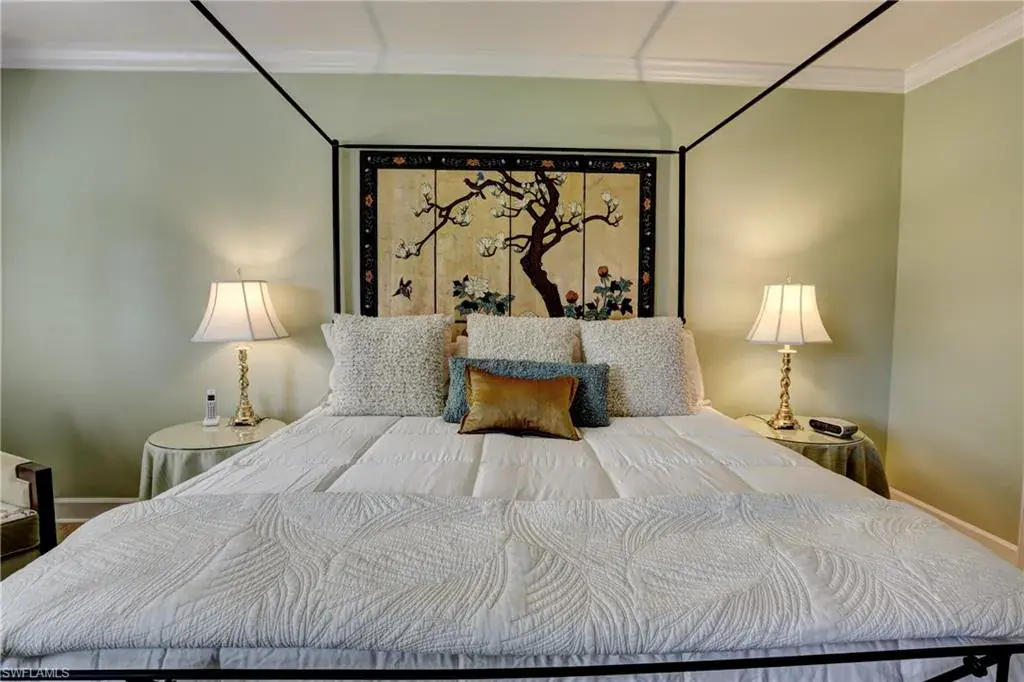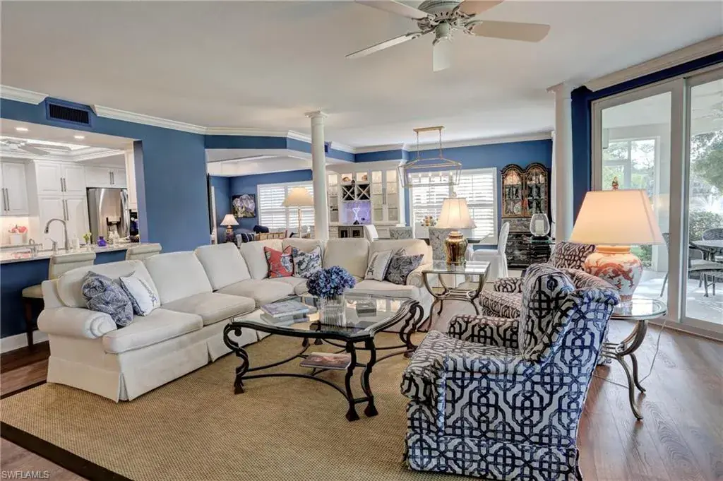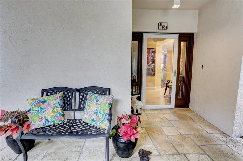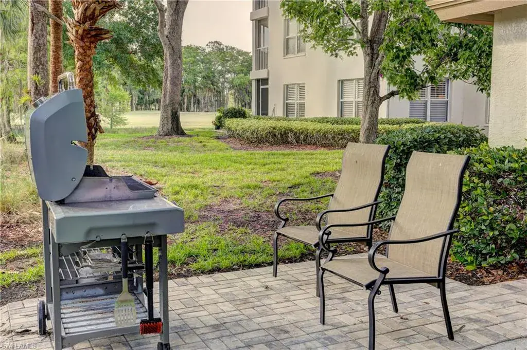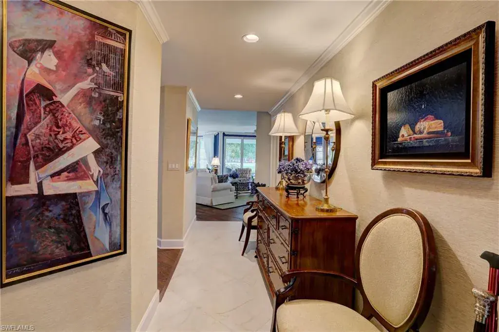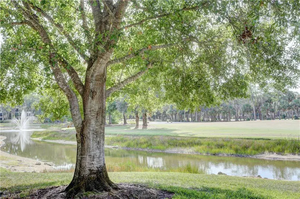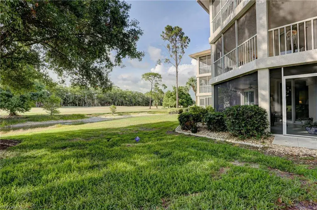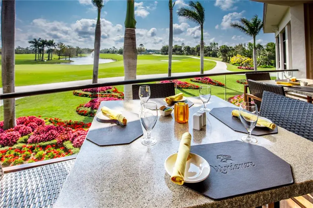 Elegant 1st floor corner condo with large lanai overlooking lake and golf, just steps to the club! This home has been totally and tastefully renovated with attention to every detail and meticulously cared for. New floors throughout, new paint, beautiful crown moldings, remodeled baths. Kitchen remodel is a chef’s dream and open to great room with quartzite counters, all new appliances, induction cooktop, even craft ice in freezer! Great room with built in bar and beverage fridge, glass door cabinets with lighting, electric fireplace and mantel. The lanai is a retreat with panoramic screens, impact sliders, porcelain tile, surrounded by custom rock garden, and the view is exceptional! Enjoy 27 holes of Arthur Hills immediate golf, active tennis/pickleball with10 Har Tru tennis courts, 7 pickleball courts, popular bocce teams, full croquet, resort-style zero entry pool, state of the art fitness center, w/full spa services & group exercise classes. New activity center with circular outdoor bar and pickle ball stadium for exhibition matches with seating for 165! Enjoy indoor/outdoor casual dining at the Tiebreaker and a lively social schedule of events/parties at the club. Wyndemere, a gated premiere 2025-2026 Platinum Club of America, known for its friendly and welcoming membership, is ideally located within minutes to world class dining, shopping and the spectacular sugar sand Gulf beaches. Come join the fun of this spectacular Southwest Florida lifestyle!