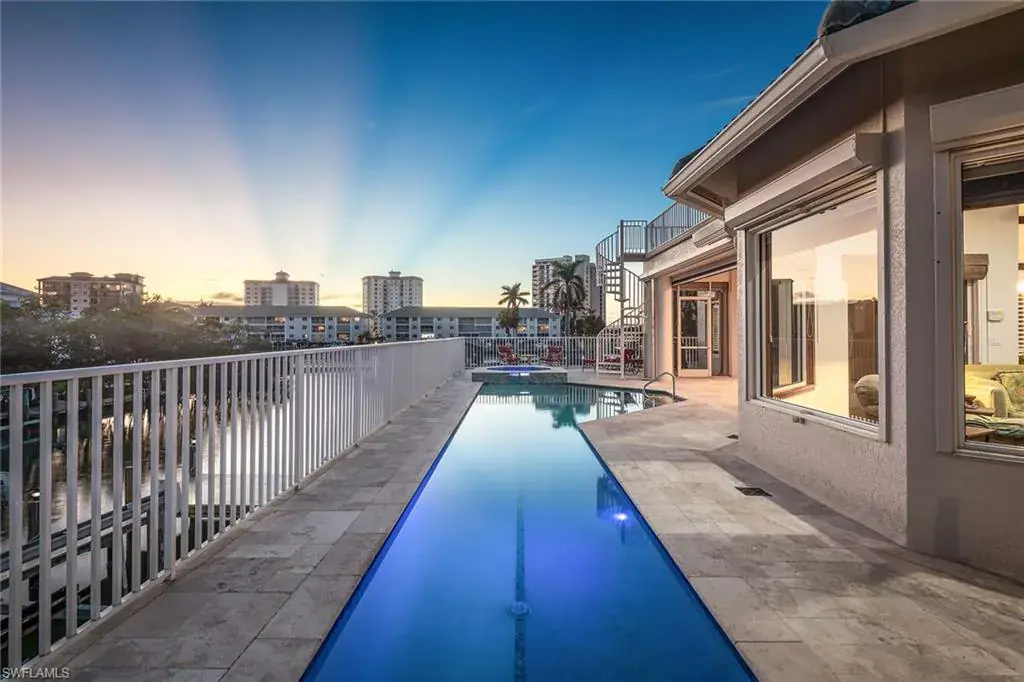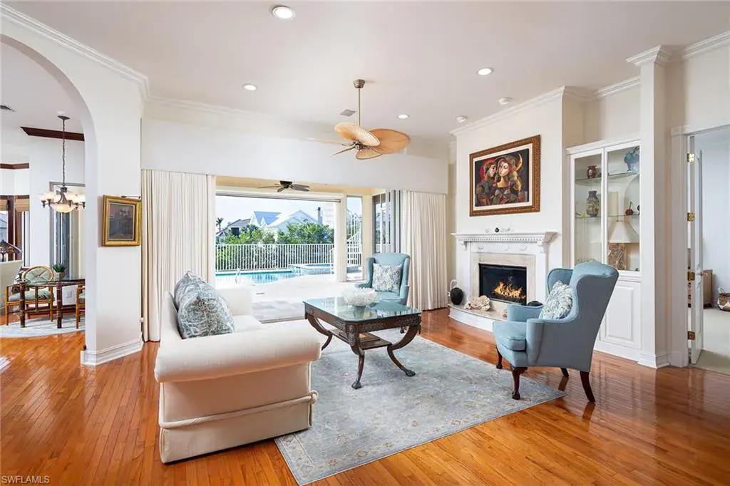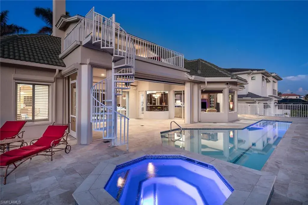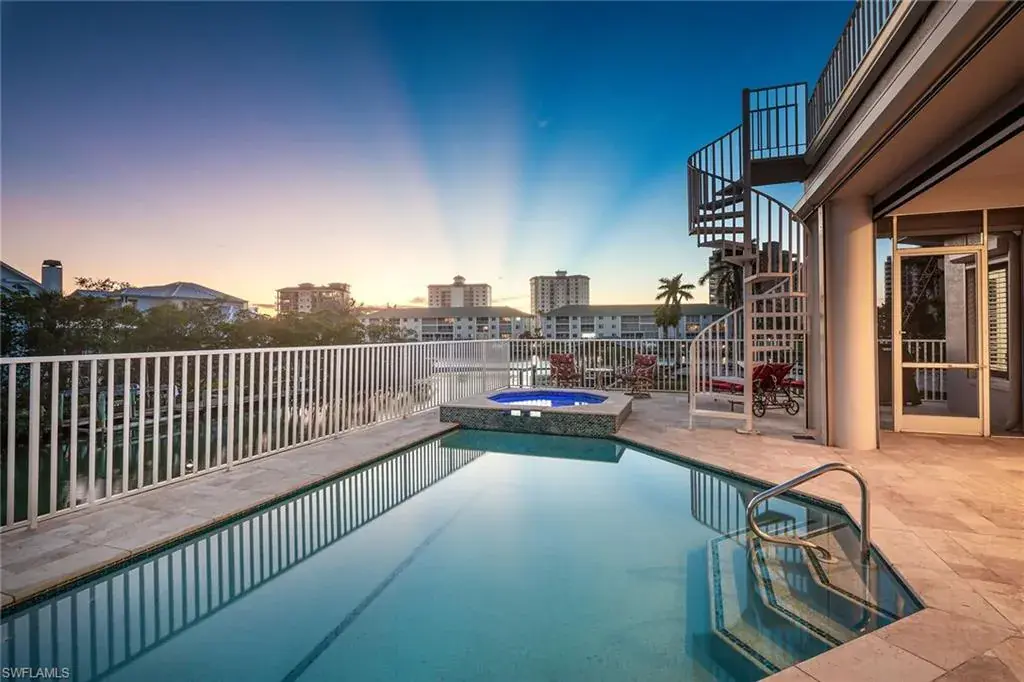 Welcome to waterfront luxury! Enjoy waterfront living without the worry – this home got NO WATER in the living areas or pool area during any storm (elevation certificate available)! HIGH AND DRY! This stunning custom-built home on a coveted southern-facing, cul-de-sac lot offers 4,117 square feet of meticulously maintained living space. Enjoy 4 spacious bedrooms, a versatile den/theater room, and 4 bathrooms, along with separate living/family rooms and a formal dining room. Custom-built and occupied by the only owner, this home has been pristinely cared for and thoughtfully updated along the way. Recent enhancements include a newer roof, modernized kitchen, newer appliances, updated water heaters, pool equipment, and fresh outdoor decking. Unique to this property, the pool and spa are elevated to the main level, allowing for seamless flow from the interior to the outdoor entertainment space – a rare feature and ideal for enjoying the sunset in privacy. The boat dock, replaced in 2022, features a 15,000 pound boat lift to keep your treasured boat out of the water and protected. The expansive lower level boasts a large garage that can accommodate up to 6 cars, plus two air-conditioned flex rooms ready to be tailored to your needs. This is more than a home; it’s a lifestyle.