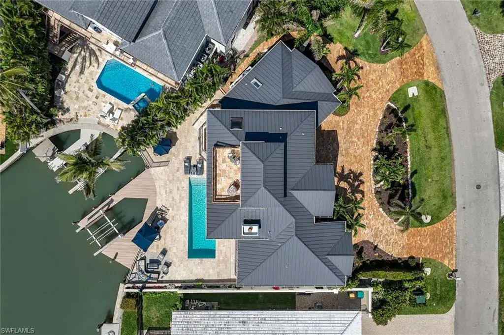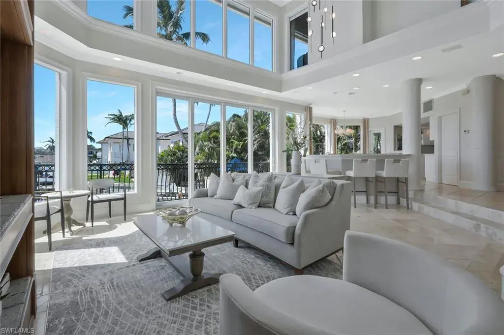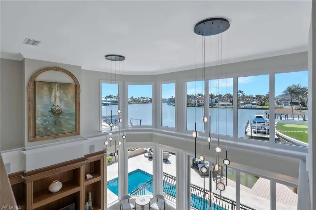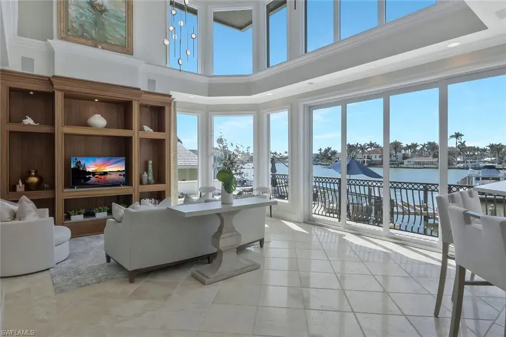 Sky-high waterfront fortress with 360° views, boat dock, pool, and southern exposure. Prepare to be captivated by this one-of-a-kind vertical masterpiece—a multi-story waterfront fortress in Naples that redefines luxury coastal living. With each level offering a unique experience, this architectural gem is designed for those who crave views, space, and unforgettable moments.