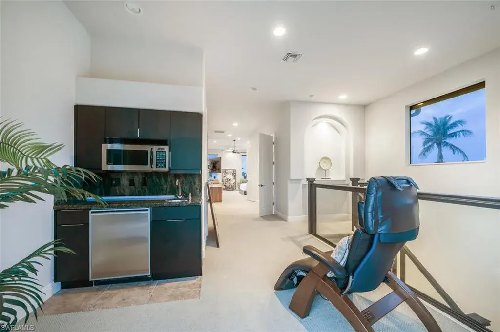Traveling between floors has never been easier with your choice of an elegant elevator or a grand staircase leading to the opulent owner’s suite. Here, immerse yourself in luxury with a cozy morning kitchen, a spa-inspired bathroom, and an exclusive sundeck—your personal retreat for sun-soaked serenity.