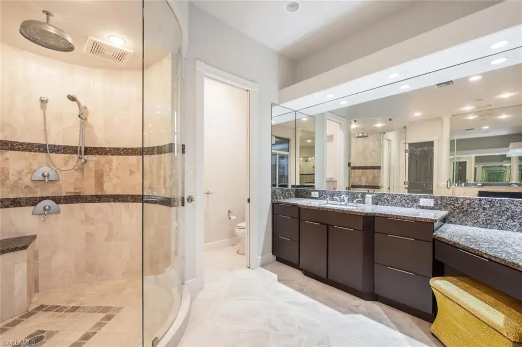 For the culinary aficionados, this chef’s kitchen is a true masterpiece! Featuring custom cabinetry, gleaming granite countertops, and high-end stainless-steel appliances—including two dishwashers and a spacious pantry—it’s a space designed for both functionality and flair.