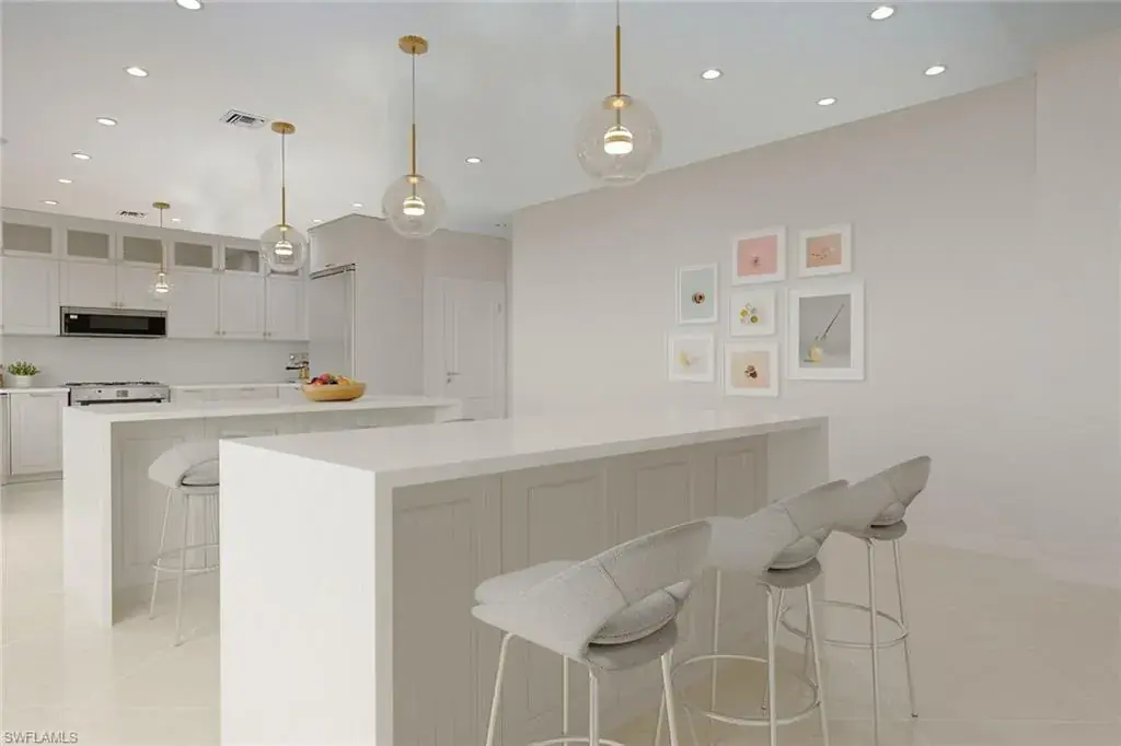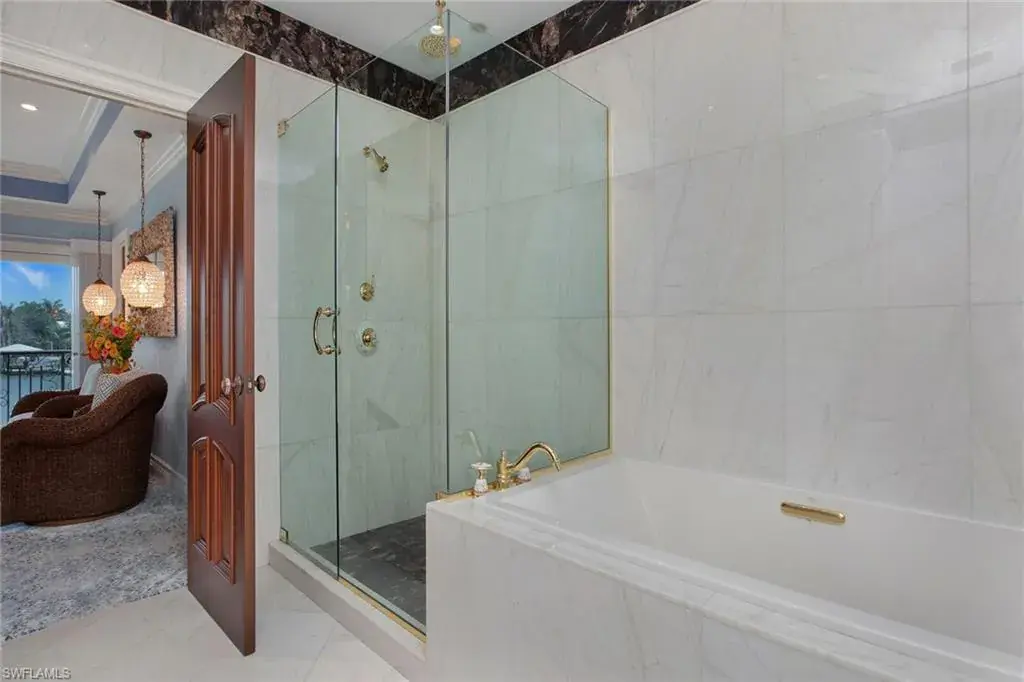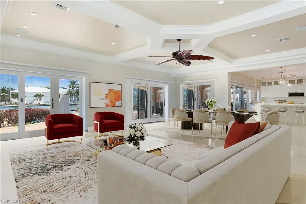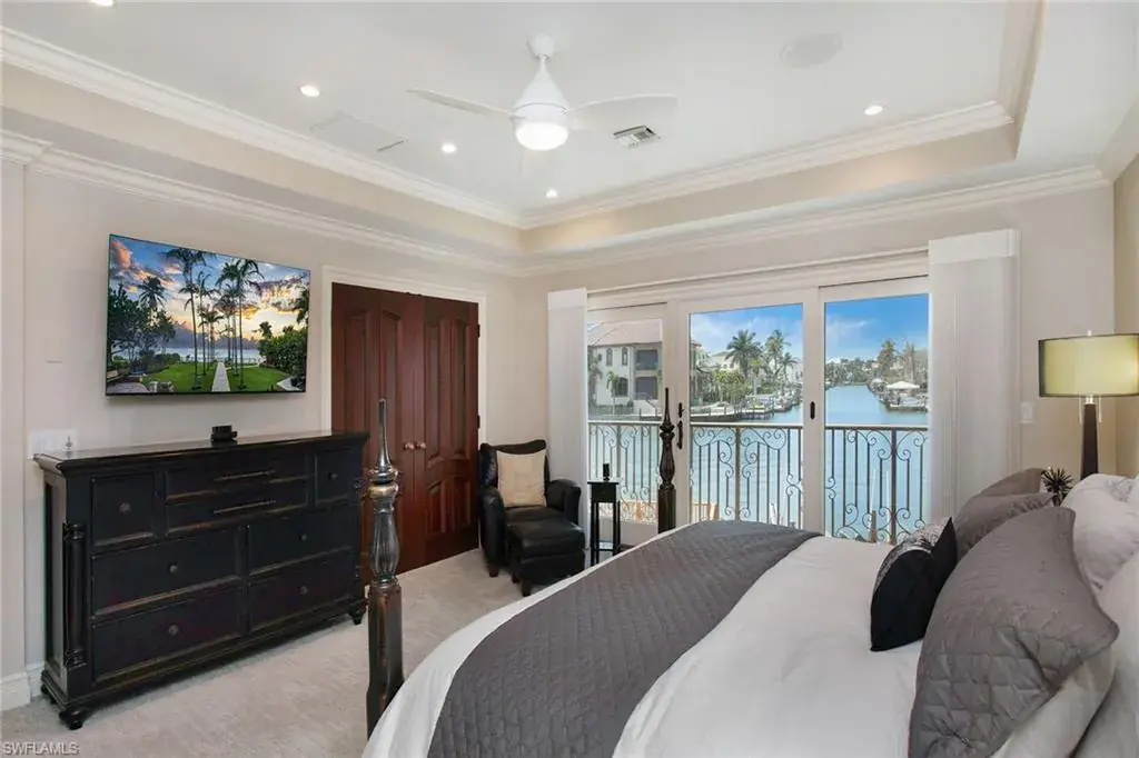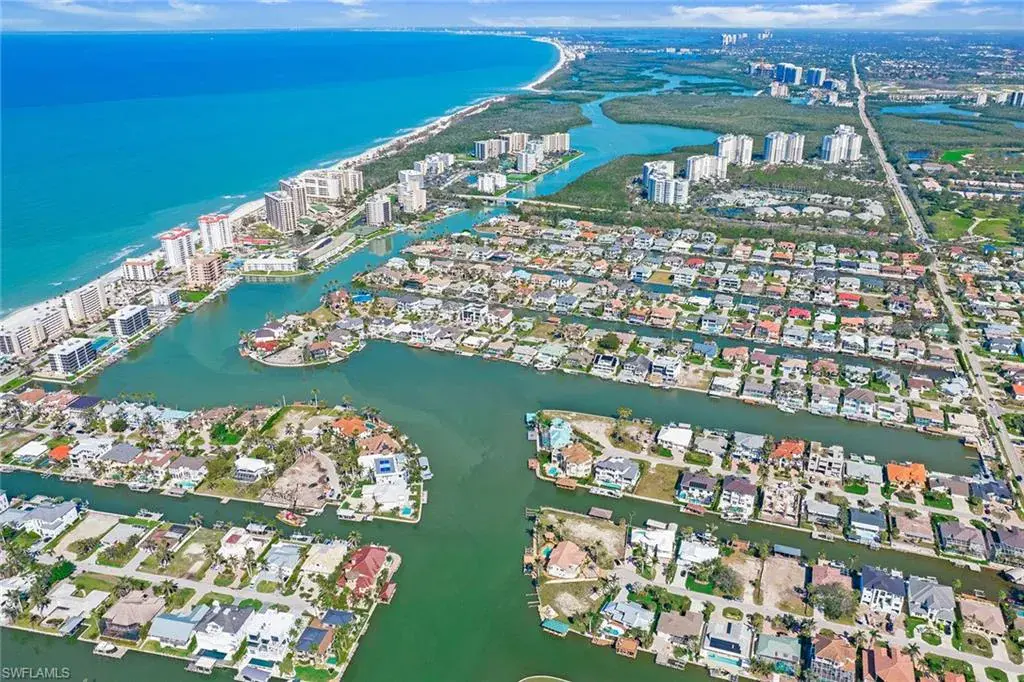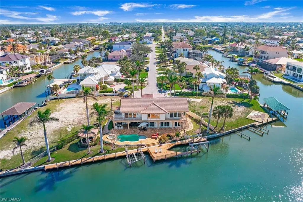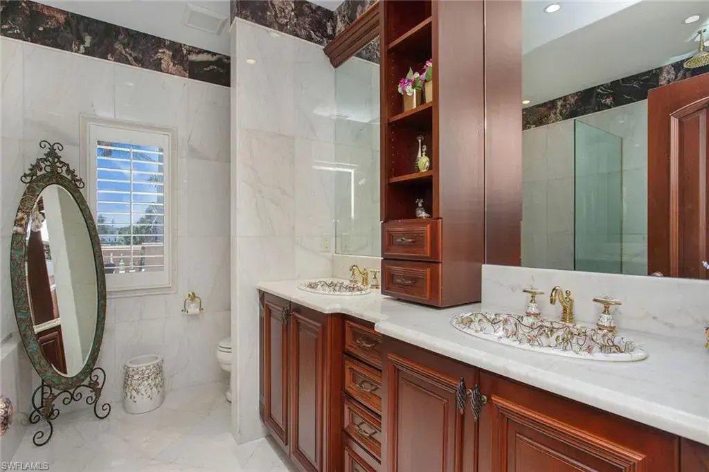 Welcome to 342 Germain Avenue, an unparalleled coastal retreat on an extraordinary gulf access tip lot in the prestigious Conners area of Vanderbilt Beach. This exquisite estate epitomizes the pinnacle of Naples coastal living, offering a unique blend of luxury, privacy and breathtaking waterfront views. At end of Germain Avenue’s cul-de-sac, this premium property spans .37 acres and boasts 175 feet of pristine waterfront with western sunset exposure. Just minutes from the open gulf, Vanderbilt Beach, the Ritz-Carlton Beach Resort, and upscale shops and restaurants at Mercato, this location offers the ultimate in convenience and exclusivity. This is a rare opportunity to customize or rebuild a home tailored to your dreams. The existing two-story architectural masterpiece features a grand entryway with massive iron doors, soaring ceilings and dual curved marble staircases that frame a stunning view of the bay. The house includes five bedrooms and 5.5 baths, with two bedrooms and two full baths on the first floor, along with a pool bath. The expansive kitchen, dining room and living areas offer sweeping water views and are ready for your personal touch. The second floor features a luxurious primary suite with a study and two terraces, one overlooking the water and the other offering extraordinary sunrise views. The second level also features two guest bedrooms, both are en suite with large closets and gorgeous waterfront balconies. One of the most extraordinary features of this home is the vast outdoor space, ideal for grand entertaining or a private oasis. The outdoor kitchen and dining area provide a shady respite, while the resort-style saltwater pool and spa, boat and jet ski lifts, gazebo and deck spanning the entire seawall create the ideal backdrop for relaxation and entertainment. If you are seeking an exclusive boater’s paradise in the heart of Naples, look no further than 342 Germain Avenue. This is coastal living at its finest. Please note the photos depicting the kitchen, dining area and living room are virtual renderings.