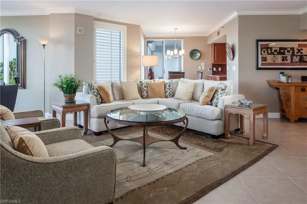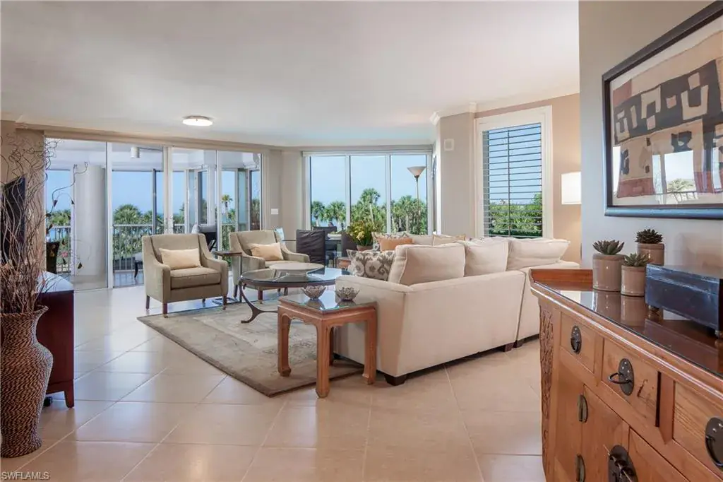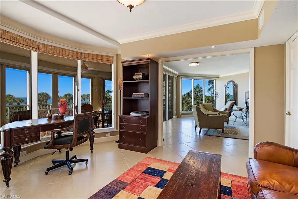 Fantastic opportunity to live directly on the beach in Bay Colony at Pelican Bay! Relax to the sound of waves breaking on the shore, wake each day to beautiful views of the Gulf’s blue waters and white sand beaches, and enjoy the privacy and luxury of the Bay Colony lifestyle while living in this spacious and inviting two-bedroom plus den residence in The Contessa at Bay Colony. Natural light bathes the interior, pouring into the residence from floor-to-ceiling window walls that frame captivating sunsets into sparkling Gulf of Mexico waters. The innovative, fan-shaped floor plan yields spectacular, direct Gulf views from every primary room, highlighting the natural beach-front beauty. The residence incorporates a generous main lanai and a second private lanai off the guest bedroom, a chef’s kitchen with warm custom cabinetry, granite counters, copper wall tile, and stainless built-in appliances, large Master and guest baths, 24” x 24” porcelain tile flooring, plenty of storage, and two conveniently located under building parking spaces. Contessa is a full-service beachfront tower offering 24-hour staffing and attended front desk, grand salon, library/board room, fitness facility, two guest suites, and fantastic on-site tennis for owners’ exclusive use. Additional amenities include the Bay Colony Beach Club’s casual open-air dining and bar service poolside, indoor dining, attended beach services, an active tennis program, plus all Pelican Bay community amenities. Don’t miss this outstanding opportunity to own a piece of paradise at a remarkably attractive price in Bay Colony at Pelican Bay, where convenience and luxury combine to yield quality of life.