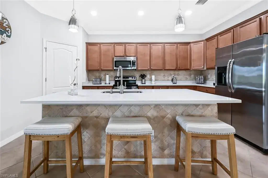 TURNKEY WITH BRAND NEW CARRIER AIR CONDITIONER WITH WARRANTY. ALL NEW FURNITURE 2023 INCLUDING SMALL APPLIANCES, DISHES, GLASSWARE, POTS AND PANS, TOWELS ETC..AT LEAST 35K IN EXTRAS. Indulge in tranquility at this tropical oasis, boasting breathtaking panoramic lake views from the lanai with NEW PICTURE WINDOW NO-SEE-UM SCREEN AND SPA for the ultimate relaxation. This 3-bedroom home featuring a den comes with modern upgrades in 2022, including a NEW ROOF, NEW POOL HEATER AND AN AQUA LINK SYSTEM FOR SMART CONTROL AND BRAND NEW A/C 2025. The open kitchen dazzles with STAINLESS STEEL APPLIANCES. NEW QUARTZ COUNTERTOPS IN 2022. Luxurious updates extend to the MASTER BATH WITH A NEW PORCELAIN TILE SHOWER, FAUCET, LIGHT FIXTURES, AND FAN. SECOND BATH COMPETELY REMODELED IN 2022 , NEW VANITY, SHOWER WITH PORCELAIN TILE, FAUCETS, LIGHT FIXTURE AND FAN.. LUXURY VINYL FLOORING IN TWO BEDROOMS, WHILE THE THIRD BEDROOM AND DEN HAVE BEAUTIFUL HARDWOOD FLOORS. BRAND NEW GARAGE DOOR OPENER THAT YOU CAN CONTROL FROM YOUR PHONE. HURRICANE SHUTTERS ensure a secure haven in your own piece of paradise. Copper Cove is just minutes to Marco Islands beautiful white sand beaches. Downtown Naples that offers so much from dinner, theater, great shopping, zoo & botanical gardens etc. is another option close by. Move in today and savor the serenity. Lower insurance premiums in 2025. CALL FOR DETAILS SO MUCH FOR THE MONEY!!!