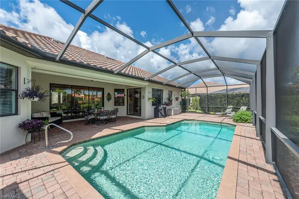 Welcome to your Naples retreat, nestled on an oversized lot with a tranquil lake and preserve views. This inviting three-bedroom plus den (or fourth bedroom), two-and-a-half-bath, three-car garage residence boasts a spacious great room that flows effortlessly into an open-concept kitchen featuring solid wood cabinetry, granite countertops, and stainless steel appliances, perfect for entertaining family and friends. The large great room provides ample space for relaxation and gatherings, while the three well-appointed bedrooms offer comfort and privacy. The private owner’s suite showcases a spacious bedroom with lake views, a large walk-in closet, and a luxurious bath. Across the home, the two guest bedrooms offer ample space, a full guest bath, and an en-suite half-bath/pool bath. You will also find a versatile den that can serve as a great home office. Step outside to discover your private oasis—a sparkling pool surrounded by an inviting covered lanai and generous pool deck area, ideal for enjoying the Florida sunshine and hosting outdoor barbecues. Copper Cove Preserve is an intimate, family-friendly neighborhood featuring gated access and low HOA dues. Even better, it is ideally situated just minutes from the beautiful beaches of Marco Island and the excellent shopping and dining options of south Naples. With its perfect setting and thoughtfully designed layout, this home will not disappoint.