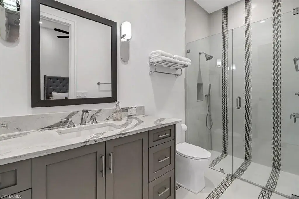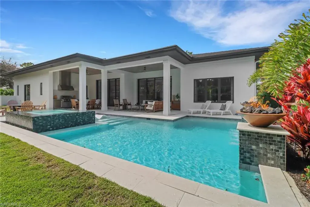 Outstanding home completed in September of 2023. Located in an X flood zone, this home is being offered move-in ready, fully furnished. Four bedrooms with en-suites that include completed California Closets. Many upgrades from light fixtures to the top of the line kitchen which includes an Electrolux/Sub-Zero/Wolf appliance package. The backyard is a tropical oasis with a one of a kind pool/spa that features water fountains with fire bowls. Eat outside in the outdoor kitchen or relax by the fire pit while enjoying all this beautiful, coastal home has to offer.