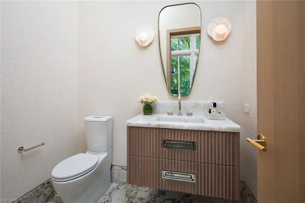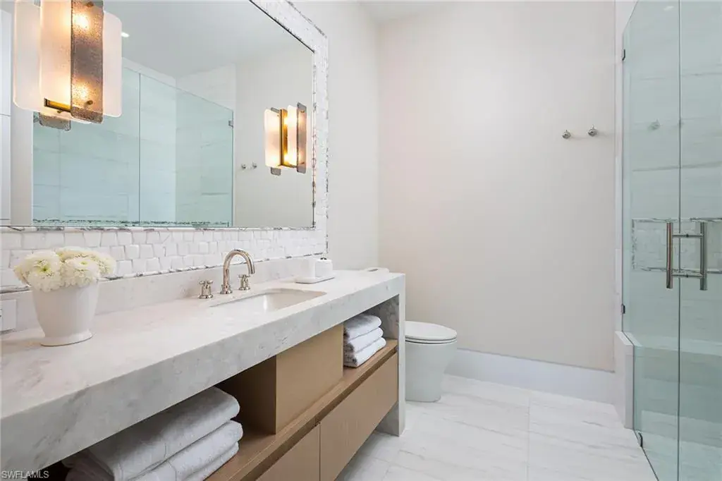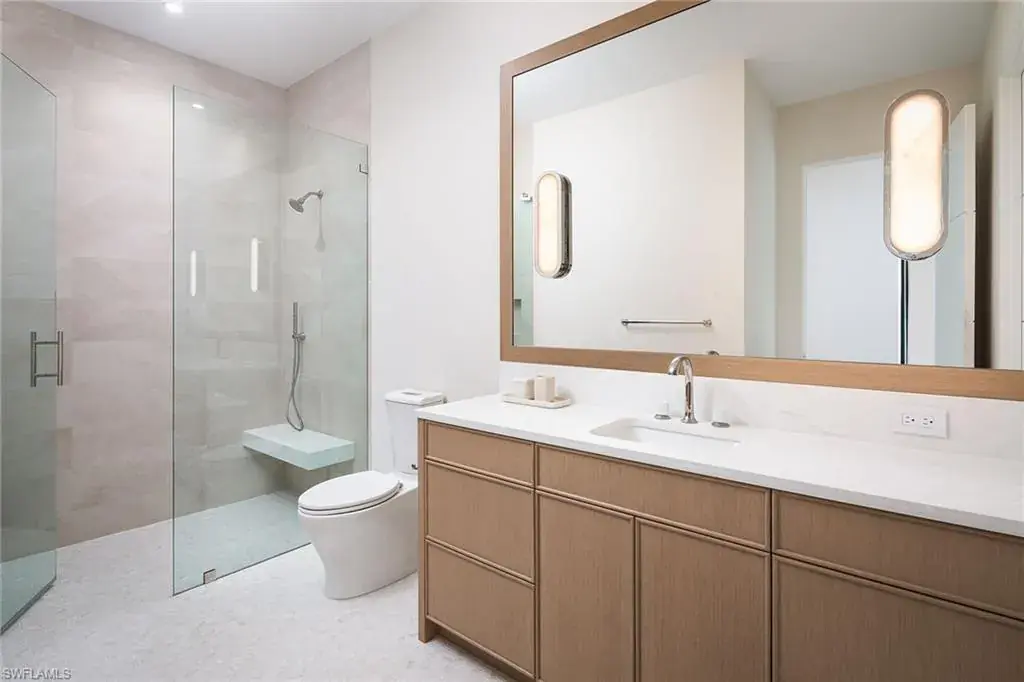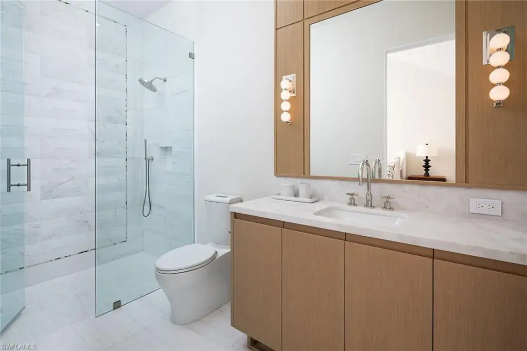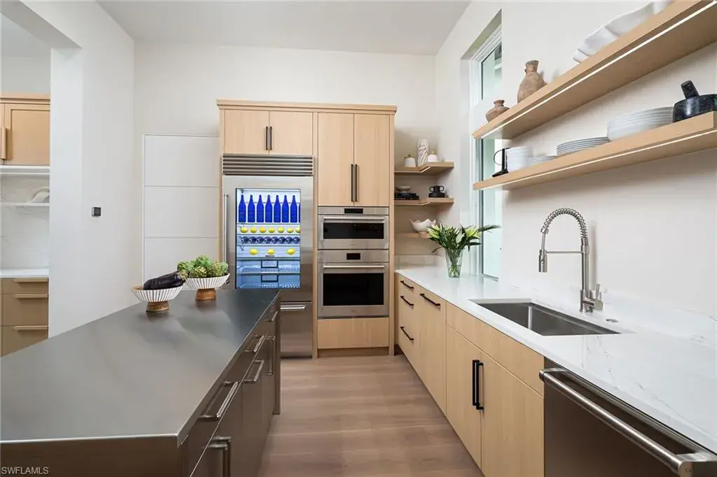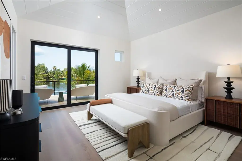 Vista Lago. On a prized southern-facing waterfront estate lot, this newly constructed, custom-curated home offers unmatched luxury, two blocks from Gulf beaches and the anticipated Naples Four Seasons Resort, capturing sweeping panoramic views across tranquil waters to the Fazio-designed championship golf course. This exquisite custom masterpiece is a triumph of luxury and architectural artistry. Encompassing 6,909 square feet of under-air living space, with a total build area of 11,742 square feet, the open-concept floor plan flows effortlessly between indoor and outdoor living, creating an ambiance of casual elegance and grandeur. The ultra-luxury interior selections for the home were expertly curated by the award-winning Freestyle Interiors, blending timeless design with today’s sophisticated modern trends. Six spacious bedrooms with en suites, a private study, fitness room, and an open loft provide refined comfort and versatile functions. The gourmet kitchen is a culinary dream, with exquisite custom cabinets and Cristallo hand-fluted counters, a separate fully equipped chef’s kitchen, custom coffee bar, and a sophisticated wine station highlights the Italian marble wall and island. Walls of glass reveal serene vistas from the expansive kitchen, living and dining spaces, all oriented toward the outdoor sanctuary. The waterfront resort-style pool and spa are surrounded by dining and lounge areas, along with a fully appointed outdoor kitchen, ideal for unforgettable entertaining. For the car enthusiast, the four-car air-conditioned garage is thoughtfully designed with capacity to accommodate up to eight vehicles with lifts. Penned by BECK Architects and expertly built by renowned Parker Hudson Homes, this is more than a home, it is an extraordinary lifestyle statement, where luxury meets legacy. Minutes to downtown Naples and a short distance to the beach. This is the epitome of the Naples lifestyle.