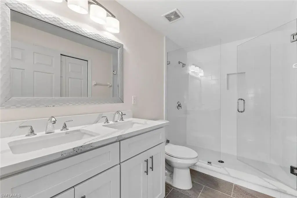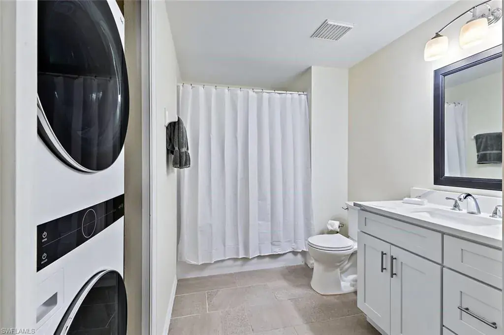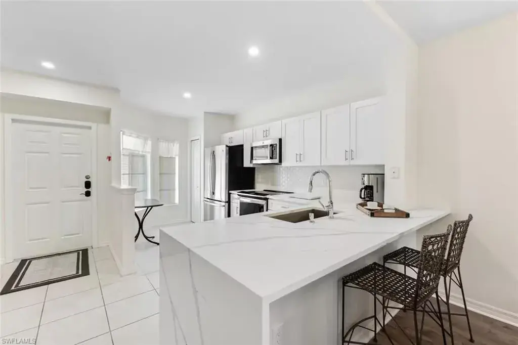 Beautifully upgraded and move-in ready, this second-floor 2-bedroom, 2-bath condo offers both privacy and security. Renovated in summer 2023, the home features an upgraded kitchen with new cabinetry, quartz countertops, stainless appliances, and tile backsplash. Both bathrooms were luxuriously remodeled—the primary bath showcasing a frameless glass shower, double vanity, and modern fixtures. Additional updates include a new washer and dryer, plus stylish living room furnishings with media center and television. Priced below reproduction cost.