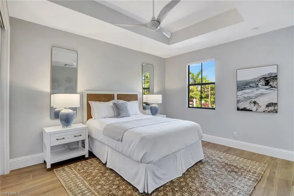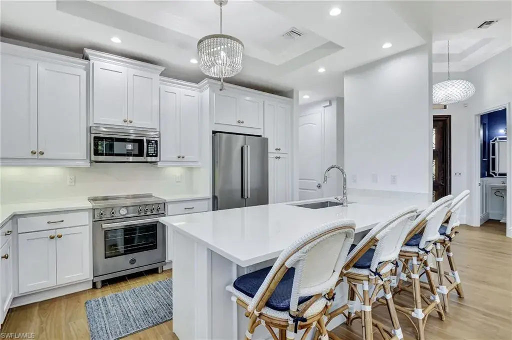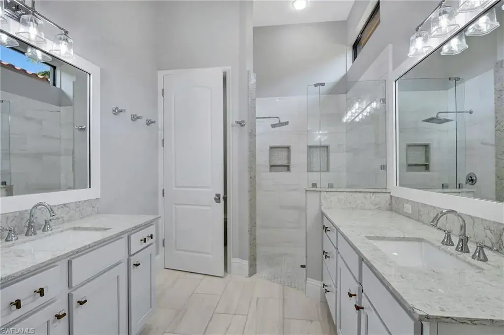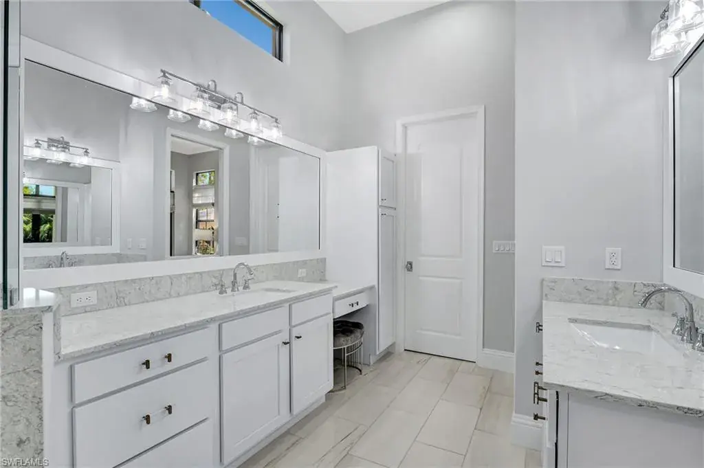 Come view this meticulously maintained and Designer remodeled home. This is a one-of-a-kind home in Cordoba with this level of design. Home has beautiful private backyard with preserve view, pool and paver brick patio. There are no other homes currently for sale in Cordoba with this kind of privacy and sized backyard. Every inch of this home has been touched. New interior paint, porcelain wood look tile throughout, remodeled bathrooms, high end appliances, Quartz countertops, closet organizers, impact glass windows and sliding doors, tray ceilings in most rooms, new lighting and so much more. This home has 4 bedrooms and 3 1/2 baths. Walk into an open concept living area with half bath, living room, dining room and Kitchen. Light and bright kitchen with quartz countertops and backsplash, snack bar, new sink and faucet, upgraded Bertazzoni Italian appliances and pantry. First floor master suite has walk out to covered lanai, remote control blinds, large walk-in closet with closet organizers and beautiful designer remodeled master bath with Italian marble walk-in shower and floor, quartz countertops on dual separate sinks. A second master bedroom on first floor has walk-in closet with closet organizer and remodeled bathroom. To complete the first floor there is a remodeled laundry room with newer Electrolux washer/dryer, laundry sink, beverage frig. and extra storage. Walk up the remodeled staircase to the second floor with two bedrooms and a jack and jill fully remodeled bath. The two-car garage has a click together hard plastic flooring system. Tile roof. This property is beautifully landscaped. See list of maintenance items the HOA covers. Lely Resort is an exclusive area of Naples with two public golf courses, one private course and restaurants. The Player’s club is resort living at its finest. Multiple pools, dining, court sports, Spa Services, full fitness center, Billiards, Computer center and more. See list of amenities. Lely Resort is conveniently located to both downtown Naples, beaches and Marco Island. Located near many restaurants and shopping. Make sure to access the link for the virtual tour video of this amazing property. See uploaded floor plan.