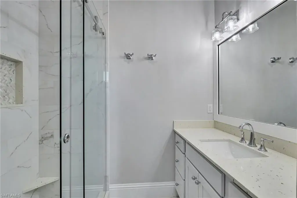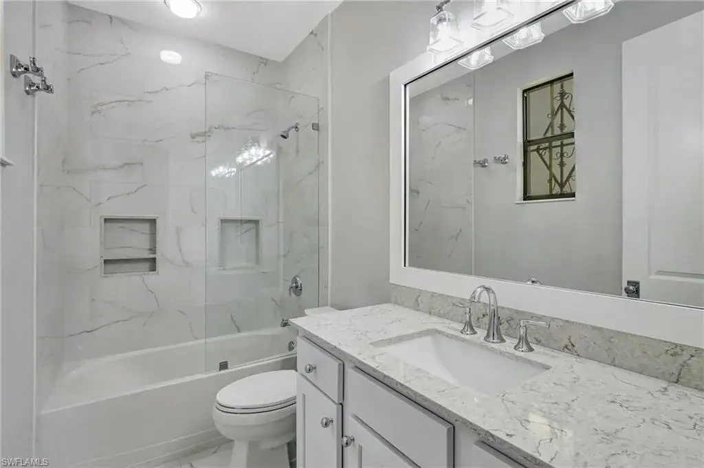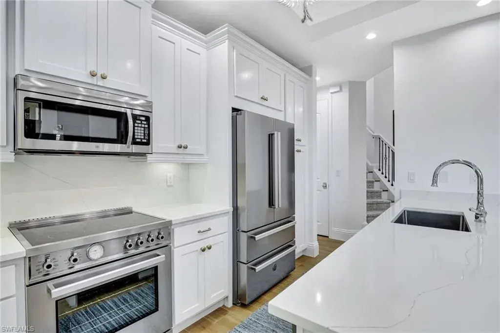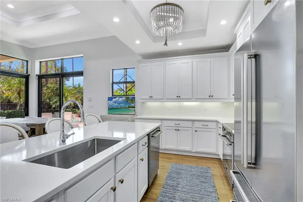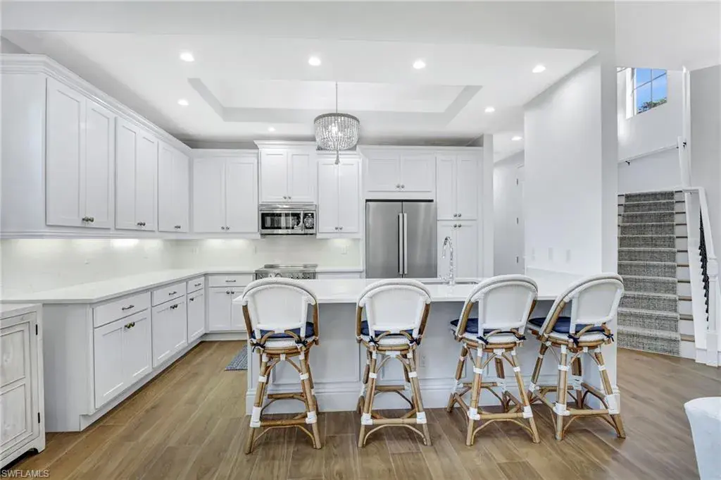 Come view this meticulously maintained and Designer remodeled home. This is a one-of-a-kind home in Cordoba with this level of design. Home has beautiful private backyard with preserve view, pool and paver brick patio. There are no other homes currently for sale in Cordoba with this kind of privacy and sized backyard. Every inch of this home has been touched. New interior paint, porcelain wood look tile throughout, remodeled bathrooms, high end appliances, Quartz countertops, closet organizers, impact glass windows and sliding doors, tray ceilings in most rooms, new lighting and so much more. This home has 4 bedrooms and 3 1/2 baths. Walk into an open concept living area with half bath, living room, dining room and Kitchen. Light and bright kitchen with quartz countertops and backsplash, snack bar, new sink and faucet, upgraded Bertazzoni Italian appliances and pantry. First floor master suite has walk out to covered lanai, remote control blinds, large walk-in closet with closet organizers and beautiful designer remodeled master bath with Italian marble walk-in shower and floor, quartz countertops on dual separate sinks. A second master bedroom on first floor has walk-in closet with closet organizer and remodeled bathroom. To complete the first floor there is a remodeled laundry room with newer Electrolux washer/dryer, laundry sink, beverage frig. and extra storage. Walk up the remodeled staircase to the second floor with two bedrooms and a jack and jill fully remodeled bath. The two-car garage has a click together hard plastic flooring system. Tile roof. This property is beautifully landscaped. See list of maintenance items the HOA covers. Lely Resort is an exclusive area of Naples with two public golf courses, one private course and restaurants. The Player’s club is resort living at its finest. Multiple pools, dining, court sports, Spa Services, full fitness center, Billiards, Computer center and more. See list of amenities. Lely Resort is conveniently located to both downtown Naples, beaches and Marco Island. Located near many restaurants and shopping. Make sure to access the link for the virtual tour video of this amazing property. See uploaded floor plan.