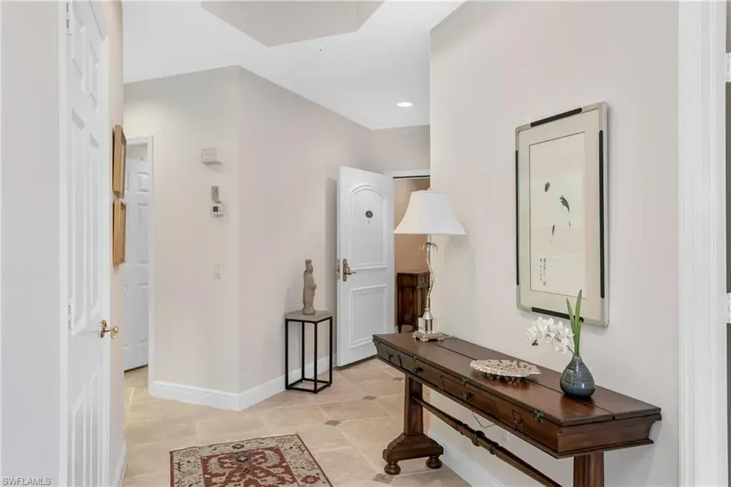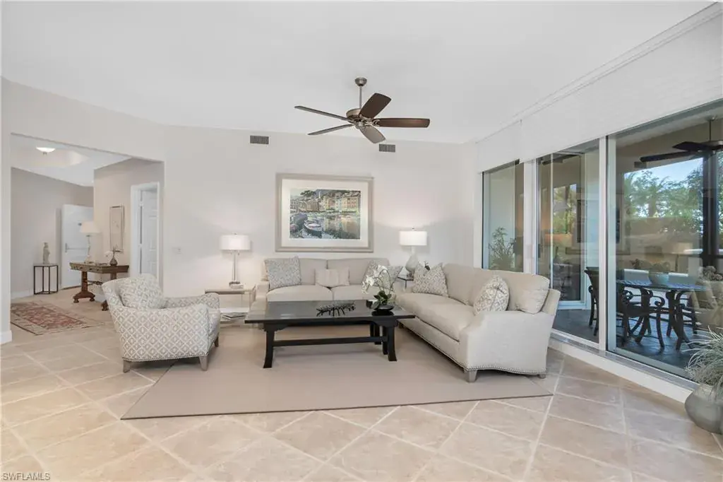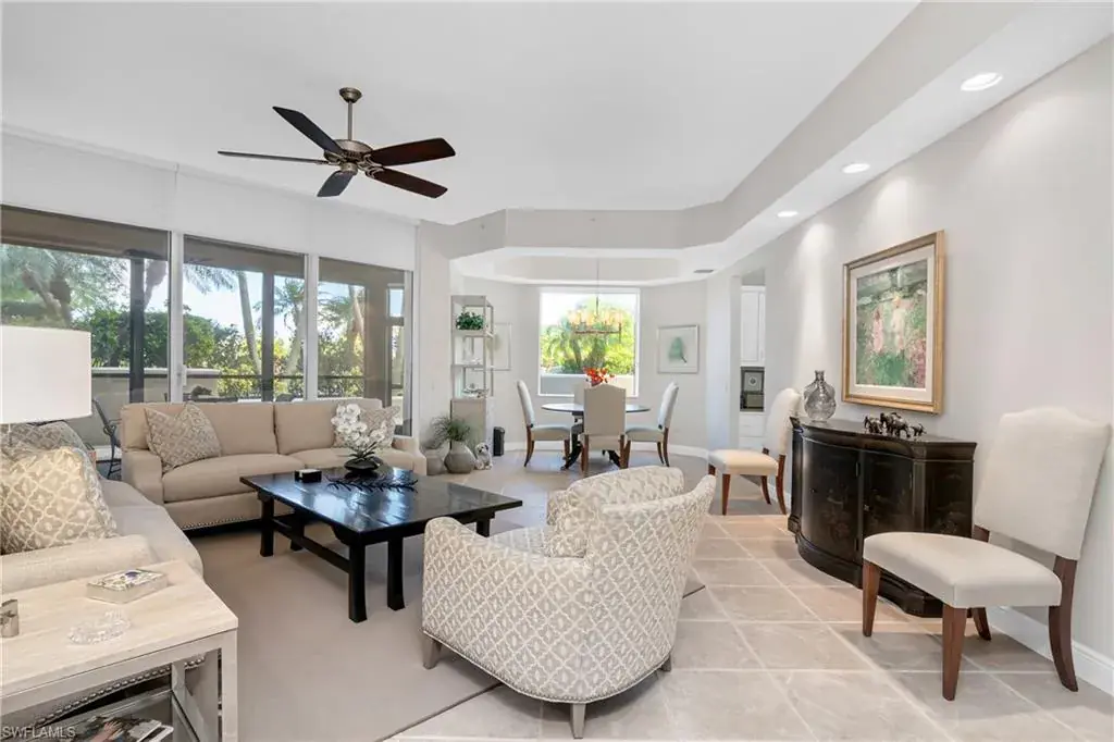 This spacious 2+den, 2.5 bath, light, end unit Garden Residence has 10 ft ceilings, & an enormous courtyard. Offered turnkey, with delightful, contemporary furnishings & decor. The Coronado is an amenity building with 2 guest suites, social & fitness centers, 24/7 security. Packages & newspapers delivered to your door by Coronado security. Excellent management & staff & dedicated, proficient board. Coronado is a well run building. The Pelican Bay Community is unique. The superlative tennis program with 18 Har-Tru courts comes with your purchase. Easy beach access by foot or tram adjacent to Coronado. Two beachfront pavilions with facilities, restaurants, sports bars & take out are mostly open after Ian repair. The Artis Philharmonic, Art Museum & Waterside Shoppes are in the neighborhood with additional shopping, movies and restaurants nearby. Community Center with everything to promote your fitness. The Pelican Bay lifestyle is outstandingly enjoyable. Buyer to pay the $10,000 Pelican Bay Foundation fee at closing. Parking # 41; Storage # 87. Assessment for elevator renovation voted & approved. Payment of $5,202.50 due February 1, 2024. 2024 quarterly maintenance fee is :$6,417.