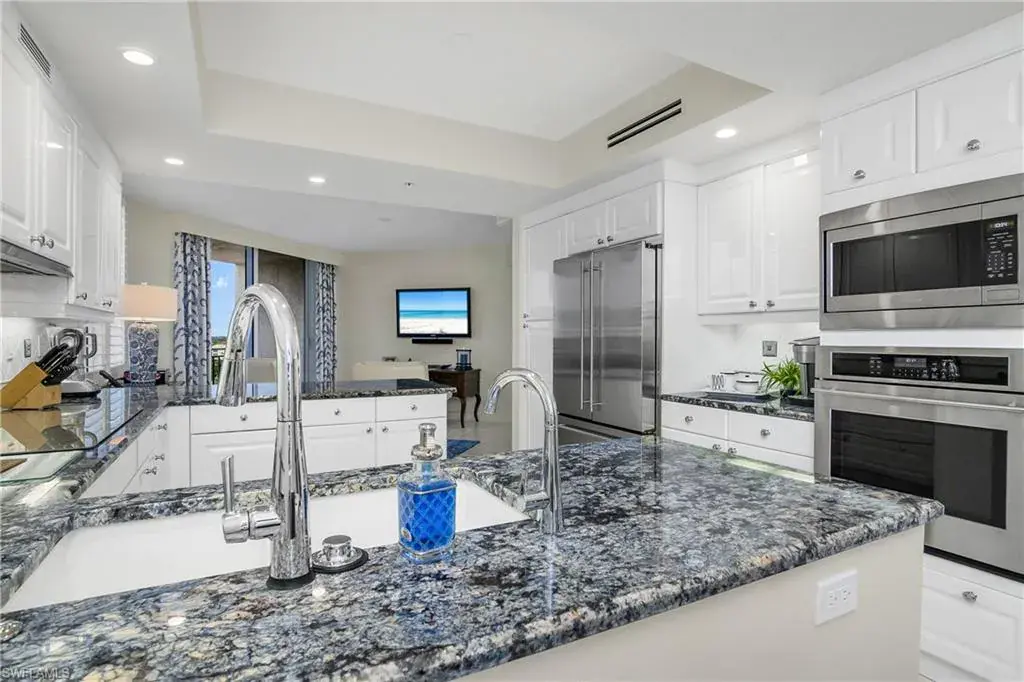 Exceptional, pristine, spacious 2+den END UNIT with outstanding gulf and preserve views. This residence has been exquisitely updated and meticulously maintained. It’s a must see ! The well located, Coronado high rise has direct tram access to the attended beach with 2 restaurants at the multi-use recreational, entertainment and fitness beach pavilions. Amenities at Coronado include: 2 guest suites, fitness and social centers, air conditioned extra storage, bicycle storage, closed garage with assigned parking. Outstanding security, maintenance and administrative personnel make living at Coronado a delight. The Pelican Bay neighborhood offers The Artis Philharmonic and Naples Art Museum. Shopping and dining at The Waterside Shoppes is always a treat. Buyers to pay The $10,000 Pelican Bay Foundation Fee at closing.