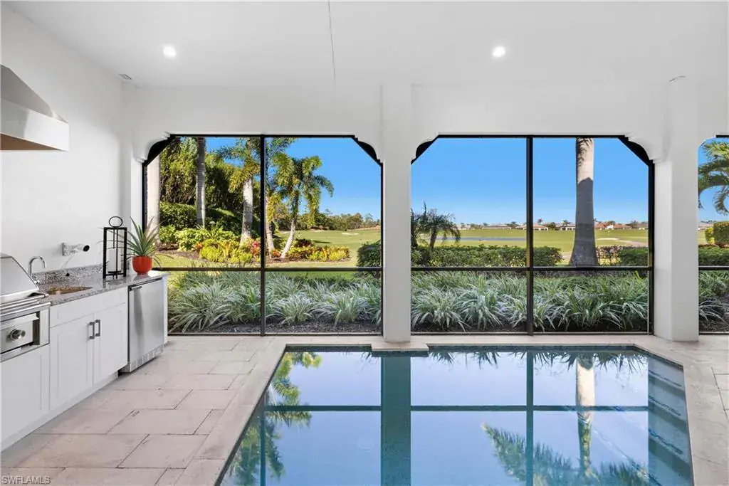 Enjoy the conveniences of a condominium while still living like a single family home with your very own private pool, built-in natural gas grill, private two and a half car garage and a beautiful courtyard entrance. Step inside this open-concept Messina floor plan and you’ll find engineered hardwood flooring throughout, electronic window shades, upgraded lighting and custom designer enhancements throughout. The chef’s kitchen is a dream with plentiful cabinets, walk in pantry, soft-close drawers, pullout lower cabinets, a built-in refrigerator, wine cooler, and a top-of-the-line upgraded 6-burner natural gas range with two full-size ovens and microwave drawer. The spacious Master bedroom overlooks the pristine golf course and features a spa-like bathroom with a soaking tub set against a tiled accent wall, dual walk-in closets, frameless glass shower, full size dressing mirror, and dual vanity sinks with a dedicated makeup mirror and seating area. Step outside to your private oasis featuring a large screened in patio equipped with a dipping pool with spa functionality and a built-in gas grill perfect for entertaining or relaxing while enjoying unparalleled privacy. This unit is located in the only building along Corsica offering breathtaking golf course views overlooking the 6th hole and offers no neighbors to the left for an exceptionally secluded setting. Additional highlights include an attached TANDEM GARAGE with plenty of space for two full size cars and a golf cart. Nestled in the award-winning Talis Park community, residents enjoy the recently renovated Greg Norman and Pete Dye-designed golf course, ranked among Florida’s top 20 by Golf Digest. The centerpiece of the community, the Vyne House, was named “Clubhouse of the Year” by Golf Inc. Magazine and offers unparalleled dining, fitness, and very active social amenities. Discover an extraordinary lifestyle where luxury, privacy, and world-class golf come together. Schedule your private showing today!