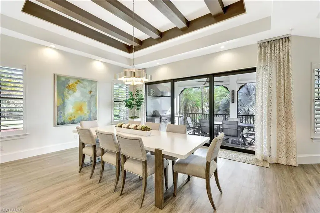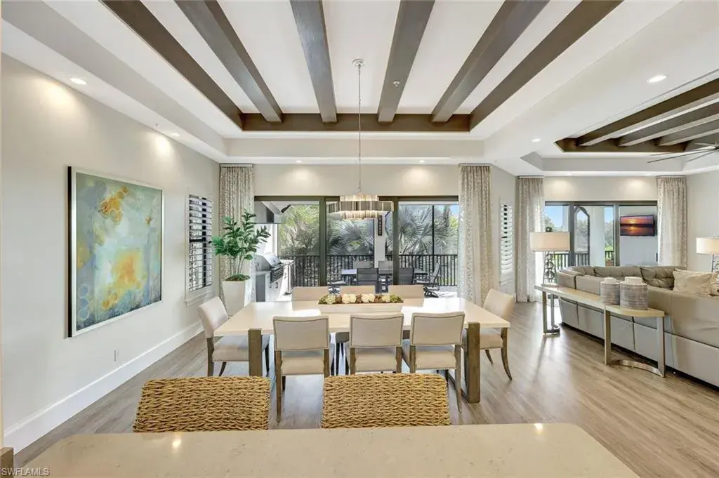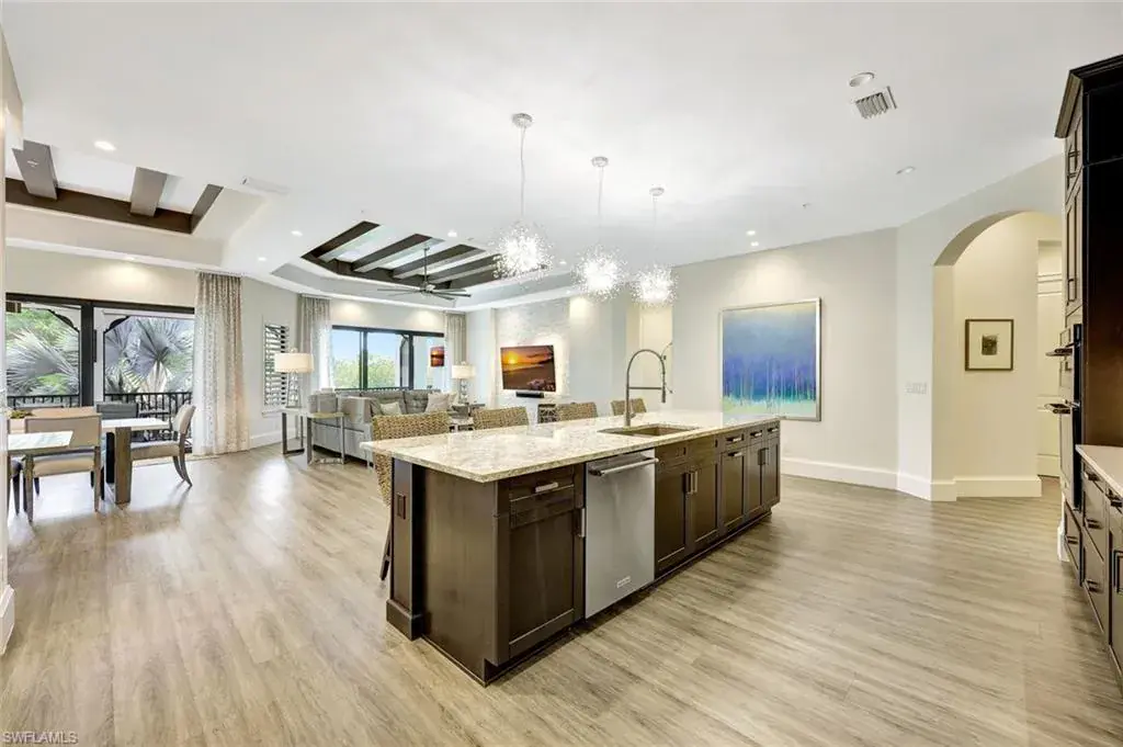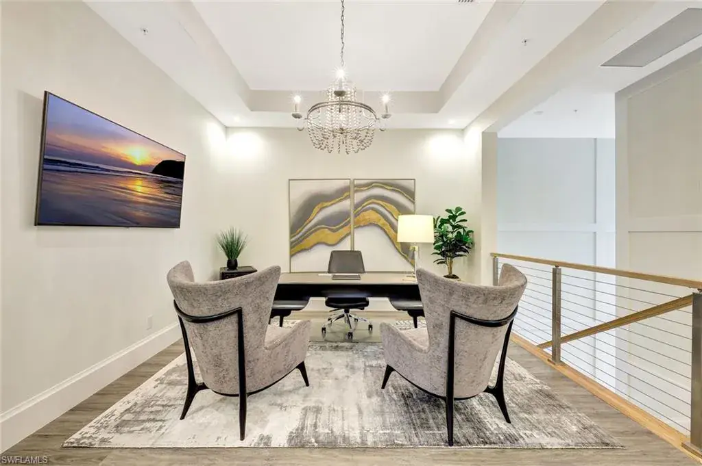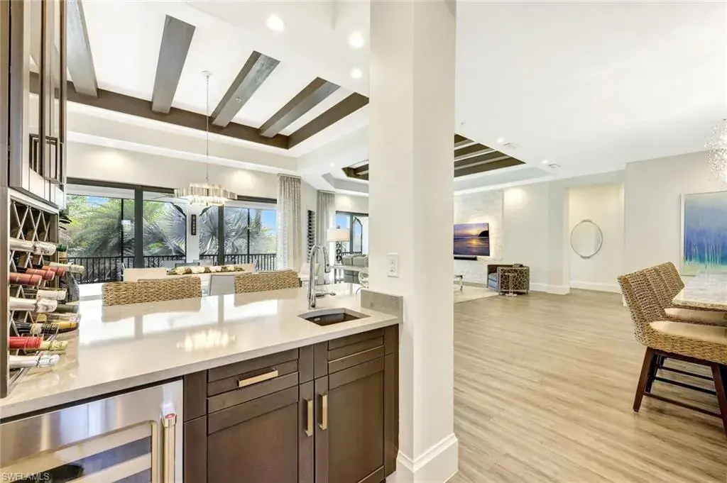 Sophisticated, Sunset-Filled Living in Talis Park’s Coveted Corsica Neighborhood. Rarely available and highly sought-after, this three-bedroom plus den second-floor residence in Corsica at Talis Park presents a unique opportunity to own one of the community’s most desirable floor plans in a premier location. Luxury and lifestyle meet in this exquisite second-floor coach home with private elevator, built in 2018 and located in the amenity-rich community of Talis Park. Spanning 3,382 sq ft of living space (4,402 total), this 3-bedroom + den/office, 3.5-bath residence delivers elegant design, expansive indoor-outdoor living, and high-end finishes throughout. Enter through a private courtyard into light-filled, open-concept living spaces designed for effortless entertaining and everyday comfort. The great room, dining area, and gourmet kitchen seamlessly connect and are highlighted by an 11-foot island, ceiling-high custom cabinetry, coffered ceilings, and natural gas—a true chef’s dream. A spacious pantry, custom bar area, and floor-to-ceiling quartz accent wall with backlighting elevate the design even further. Step out onto the 53-foot lanai with rear-facing western exposure, long lake views, and an outdoor kitchen with built-in gas grill—a stunning setting for sunset dinners or quiet mornings. Every detail is curated for luxury living, from the dual private garages and private elevator to the thoughtful upgrades and designer finishes. Located just a short stroll from Talis Park’s three-acre sports complex, residents enjoy access to six lighted Har-Tru tennis courts, four bocce lanes, a 50-foot lap pool, basketball hoops, a playground, tennis pro shop, and multiple on-site dining options. The community also features peaceful nature trails, a state-of-the-art fitness center (open 24/7), and an on-site spa offering a full range of services. Talis Park also features an award-winning championship 18-hole golf course designed by Greg Norman and Pete Dye, along with a nine-acre practice facility—a golfer’s paradise nestled within one of Naples’ most vibrant and active luxury communities. With its perfect balance of privacy, sophistication, and walkable access to resort-style amenities, this Corsica residence captures the essence of high-end Naples living.