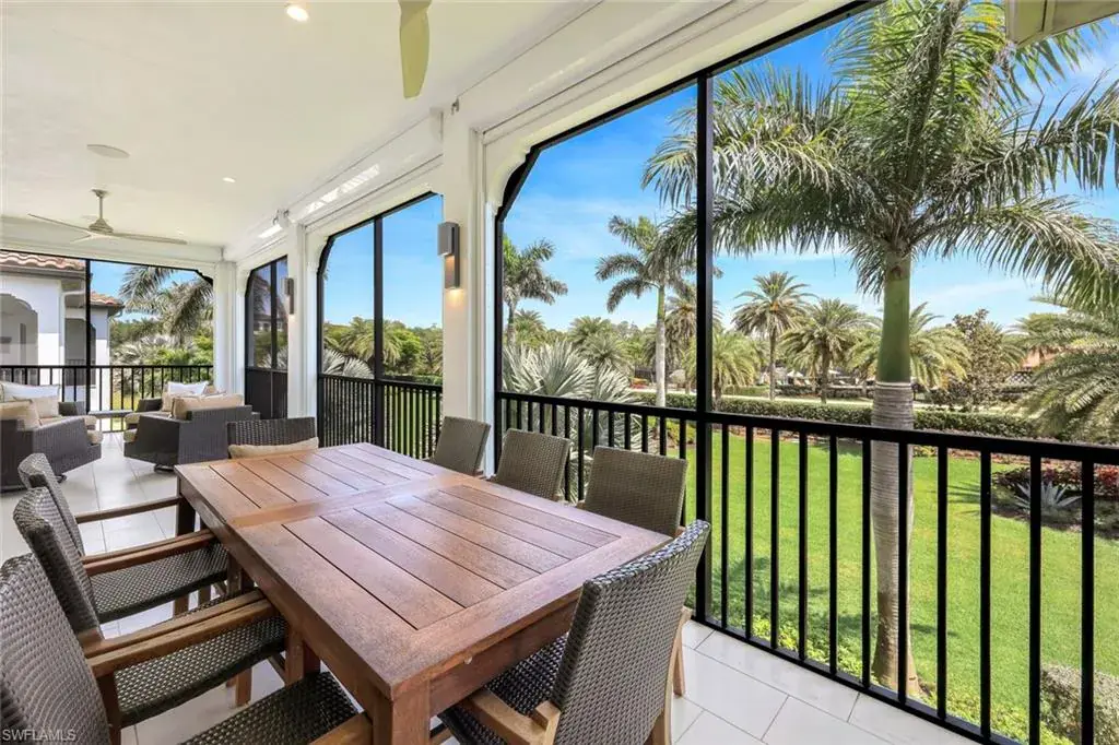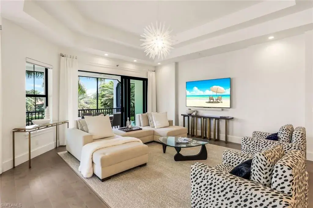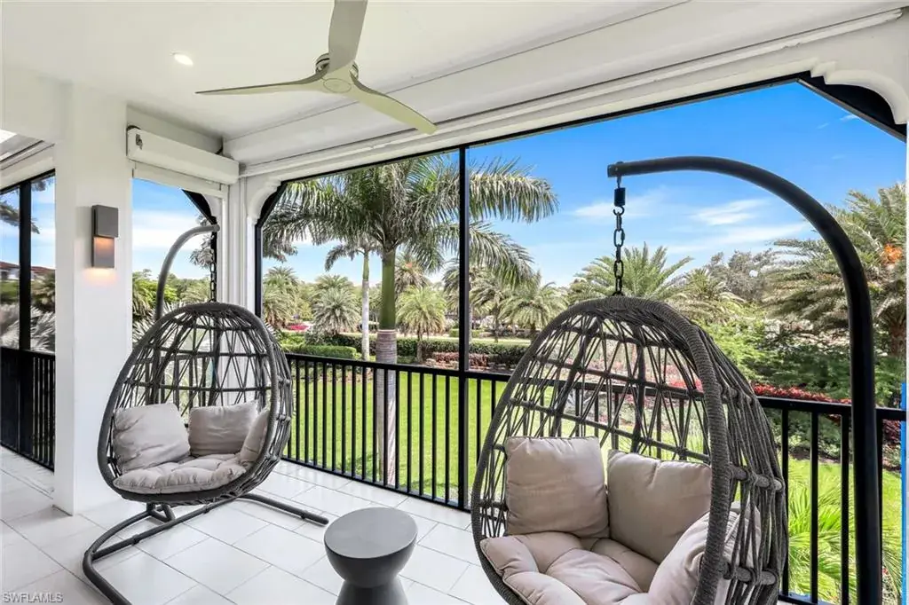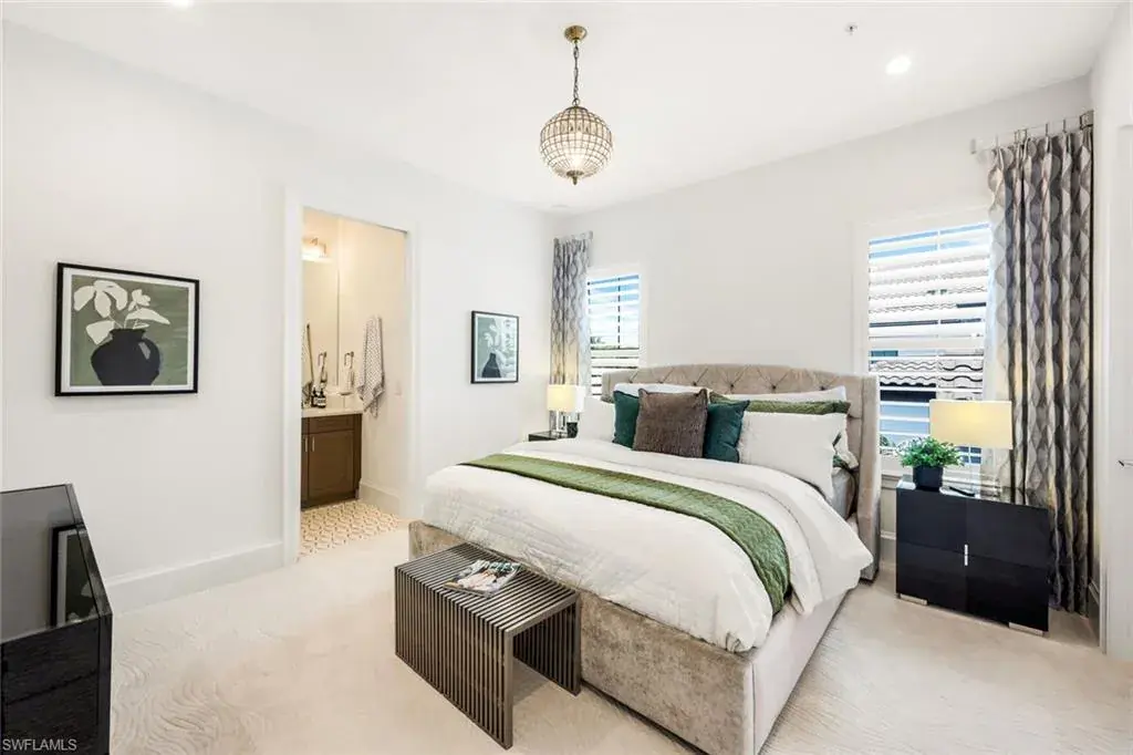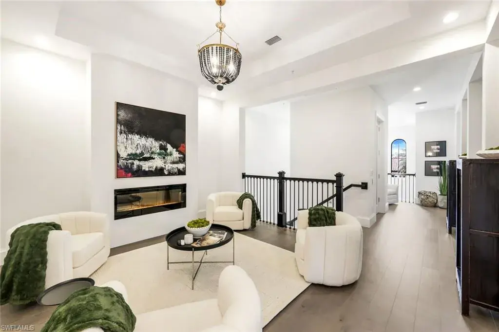 Experience the ultimate expression of luxury living in this beautifully designed 3-bedroom, 3.5-bathroom coach home, nestled in the exclusive Talis Park community. Boasting 3,382 square feet of sophisticated living space, this second-floor residence seamlessly blends modern elegance with resort-style flair. Property comes turnkey with additional items shown from staging package available for separate purchase. A private elevator and grand marble staircase welcome you into a bright and open-flow design, where soaring ceilings and expansive windows create a modern and warm ambiance. Upon arriving on the second floor, you’re instantly immersed in a refined open-concept flex space, where soaring ceilings, designer finishes and expansive sightlines create an atmosphere of effortless style. The gourmet kitchen is a chef’s dream, featuring high-end appliances, a gas range featuring a grill option, porcelain countertops, custom cabinetry and an oversized island —perfect for socializing. A versatile secondary island serves as a stylish bar for entertaining while also doubling as a functional workspace, blending convenience and class in the heart of the home. The adjoining great room and dining area flow with ease onto a screened-in lanai, offering tranquil views of lush landscaping and nearby tennis courts. The primary suite is a true sanctuary, complete with an expansive spa-like ensuite bath featuring a soaking tub, dual vanities, lavish walk-in shower and an opulent closet space. Two additional ensuite bedrooms provide privacy and contemporary comfort for guests. A spacious laundry room and ample storage ensure a flawless and elevated living experience. Beyond the stunning interiors featuring sumptuous designer fixtures and finishes, this home boasts an air-conditioned two-car garage with a custom temperature-controlled wine storage outfitted to store over 600 bottles—a rare and luxurious touch for the wine enthusiast. Additional premium features include impact resistant windows, ELECTRIC HURRICANE SCREENS and top-tier craftsmanship throughout. As a resident of Talis Park, you’ll enjoy unparalleled amenities, including a championship Greg Norman and Pete Dye designed golf course, resort-style pool, state-of-the-art fitness center, full-service spa, tennis and pickleball courts, fine dining, and concierge services. Do not miss your chance to own this premier Naples retreat. Schedule your private showing today!