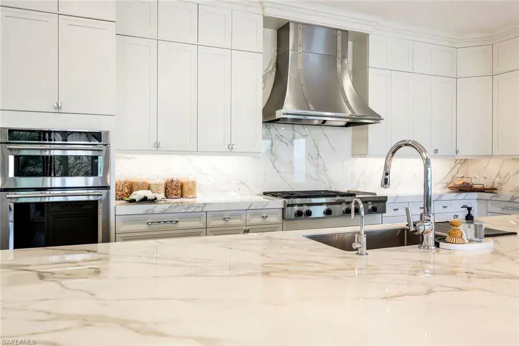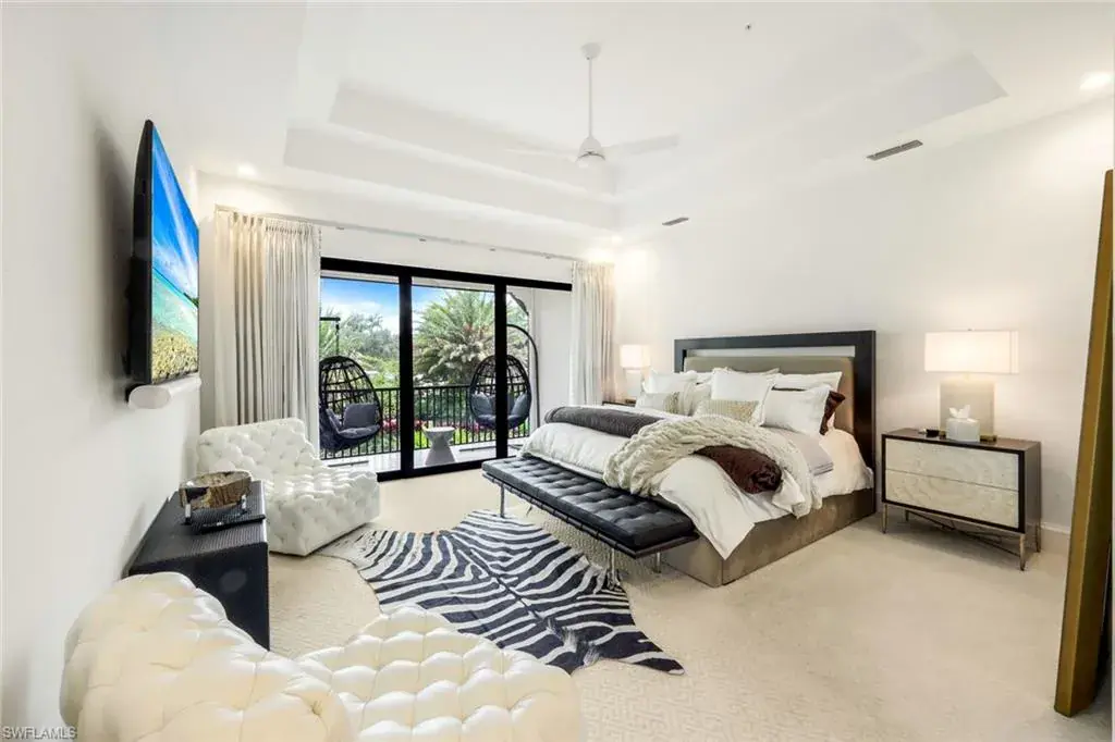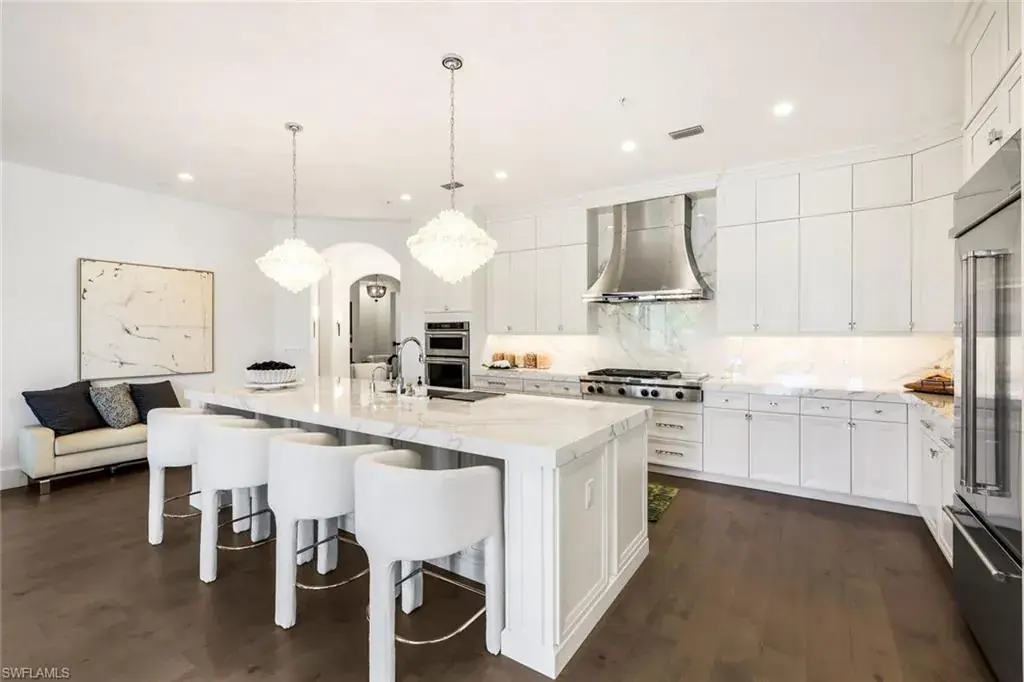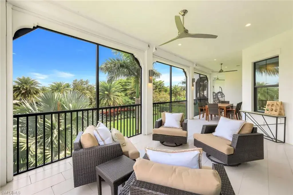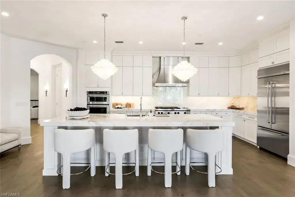 Experience the ultimate expression of luxury living in this beautifully designed 3-bedroom, 3.5-bathroom coach home, nestled in the exclusive Talis Park community. Boasting 3,382 square feet of sophisticated living space, this second-floor residence seamlessly blends modern elegance with resort-style flair. Property comes turnkey with additional items shown from staging package available for separate purchase. A private elevator and grand marble staircase welcome you into a bright and open-flow design, where soaring ceilings and expansive windows create a modern and warm ambiance. Upon arriving on the second floor, you’re instantly immersed in a refined open-concept flex space, where soaring ceilings, designer finishes and expansive sightlines create an atmosphere of effortless style. The gourmet kitchen is a chef’s dream, featuring high-end appliances, a gas range featuring a grill option, porcelain countertops, custom cabinetry and an oversized island —perfect for socializing. A versatile secondary island serves as a stylish bar for entertaining while also doubling as a functional workspace, blending convenience and class in the heart of the home. The adjoining great room and dining area flow with ease onto a screened-in lanai, offering tranquil views of lush landscaping and nearby tennis courts. The primary suite is a true sanctuary, complete with an expansive spa-like ensuite bath featuring a soaking tub, dual vanities, lavish walk-in shower and an opulent closet space. Two additional ensuite bedrooms provide privacy and contemporary comfort for guests. A spacious laundry room and ample storage ensure a flawless and elevated living experience. Beyond the stunning interiors featuring sumptuous designer fixtures and finishes, this home boasts an air-conditioned two-car garage with a custom temperature-controlled wine storage outfitted to store over 600 bottles—a rare and luxurious touch for the wine enthusiast. Additional premium features include impact resistant windows, ELECTRIC HURRICANE SCREENS and top-tier craftsmanship throughout. As a resident of Talis Park, you’ll enjoy unparalleled amenities, including a championship Greg Norman and Pete Dye designed golf course, resort-style pool, state-of-the-art fitness center, full-service spa, tennis and pickleball courts, fine dining, and concierge services. Do not miss your chance to own this premier Naples retreat. Schedule your private showing today!