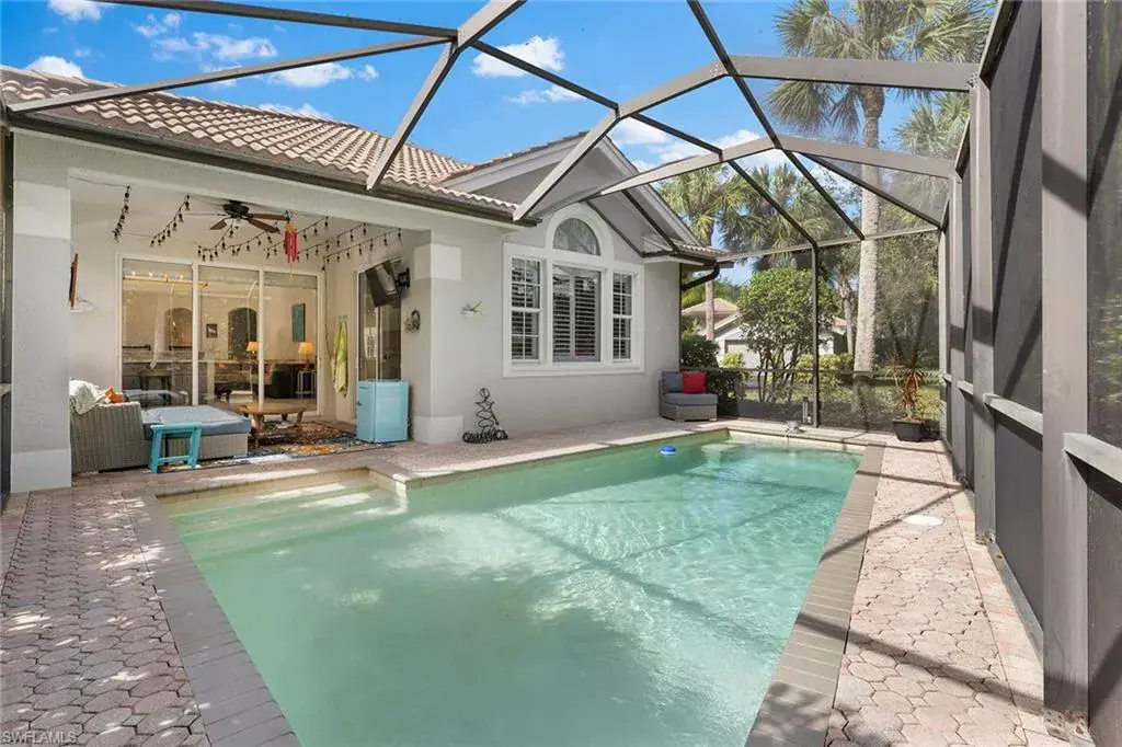 CDD paid! Experience luxury living in Cotton Green at Fiddler’s Creek, an exclusive enclave of 49 single-family villas surrounded by lush tropical landscaping and designed for privacy, this home is a serene retreat. Step inside to find a beautifully remodeled interior, with upgrades in nearly every room. The gourmet kitchen features stunning granite countertops, a Viking glass cooktop, stainless appliances and elegant under-cabinet lighting, making it a chef’s dream. The living room is ideal for entertaining, complete with a custom bar near the sliding glass doors leading to your private pool and entertaining area. This showstopper bar includes a wine cooler, granite countertop and custom glass doors. Retreat to the primary bedroom, which boasts tasteful plantation shutters, along with dual walk-in California Closets. The primary bath is a spa-like haven, featuring a spacious walk-in shower with pebble flooring, a shower seat and built-in niches for added convenience. The guest bedrooms also offer customized closets. The garage is equipped with storage cabinets for an organized and elevated look. Enjoy an active lifestyle in this amenity-rich, gated community that includes a 54,000-square-foot clubhouse, state-of-the-art fitness center, full spa, tennis, pickleball, sauna, steam room, resort-style pool with waterfall and slides, and food service, restaurants and more. If you seek an active community, Fiddler’s Creek has a full activity calendar. Optional golf, beach and marina memberships are available. Conveniently near the beautiful beaches of Marco Island and charm of Old Naples, this home offers the ideal blend of luxury and convenience. Don’t miss the opportunity to make it yours.