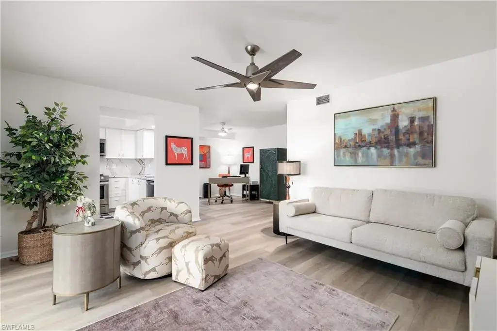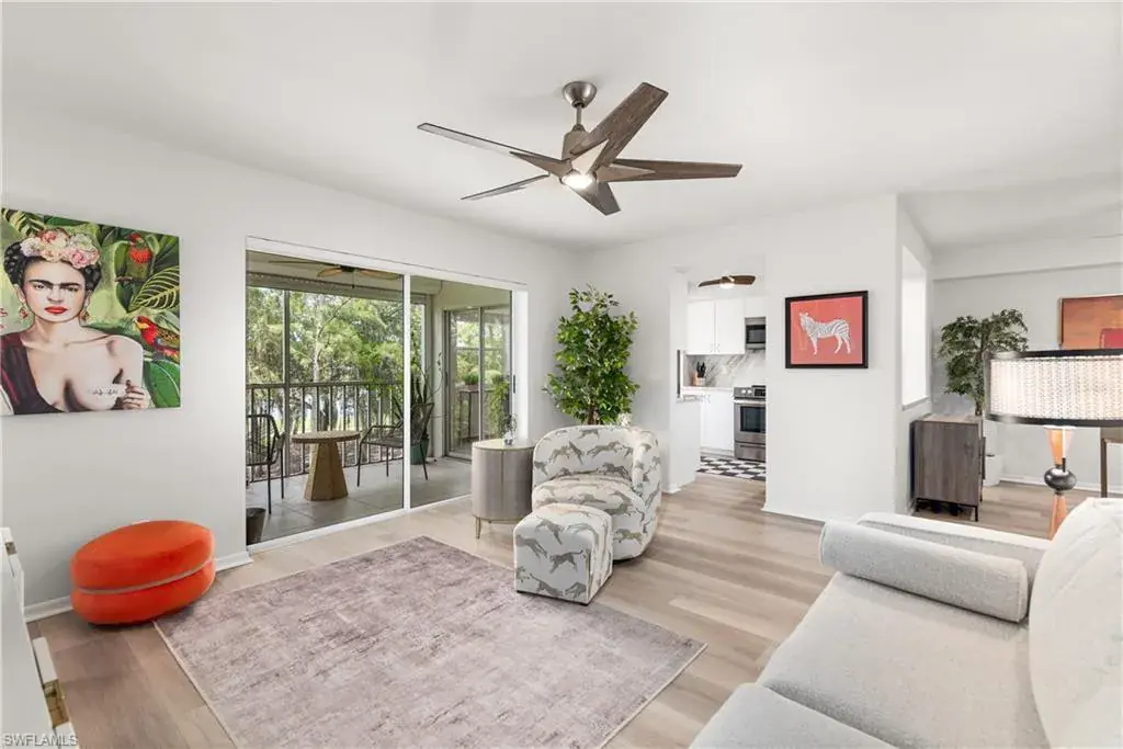 NEW PRICE! Welcome to your new home at 7320 Glenmoor Lane, Unit 205 in the heart of Naples, FL. This fully updated 2-bedroom, 2-bathroom unit offers 1053 square feet of comfortable living space. As you step inside, you’ll be greeted by new vinyl plank flooring throughout the main living areas, complemented by plush new carpet in the bedrooms. The entire unit has been thoughtfully updated, including the bathrooms, kitchen with all new stainless appliances, new lighting fixtures in the entire unit along with all new ceiling fans. Enjoy stunning views of the golf course and tranquil pond from your private outdoor space, perfect for relaxing or entertaining. Elevator access makes coming and going a breeze, and the bundled private golf club with social membership included offers endless recreational opportunities including limited golf privileges. This furnished 2nd-floor unit boasts a range of amenities, including new central AC, washer/dryer in unit, and access to the community’s gym, pool, and tennis court. The clubhouse is undergoing extensive renovations (Buyer to assume assessment of $294 qtr until 5/1/33) such as a new lap-resort pool, outdoor dining, firepit area and more! Scheduled for completion in early 2025, these renovations promise fabulous improvements for residents to enjoy. Conveniently located just a short drive from shopping, 5th Ave, and the beautiful Naples beaches, this home offers the perfect blend of comfort, convenience, and leisure. Don’t miss this opportunity to make this exceptional property your own. Call now to schedule your private showing and experience the best of Naples living!