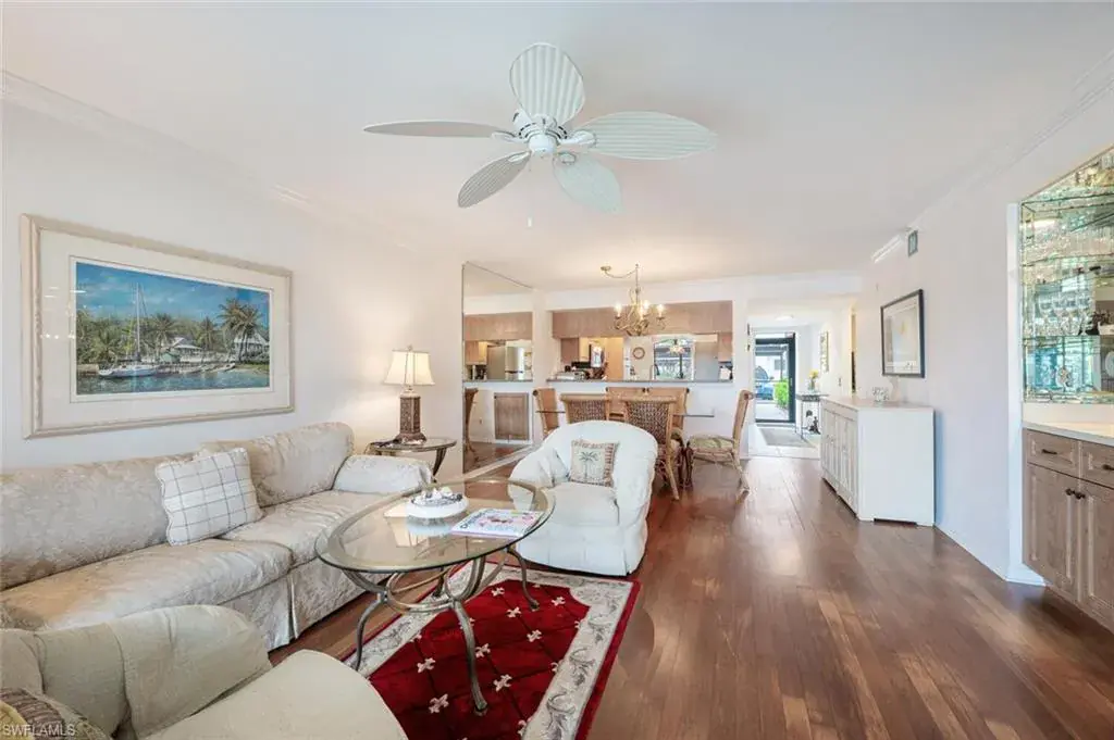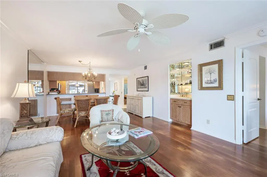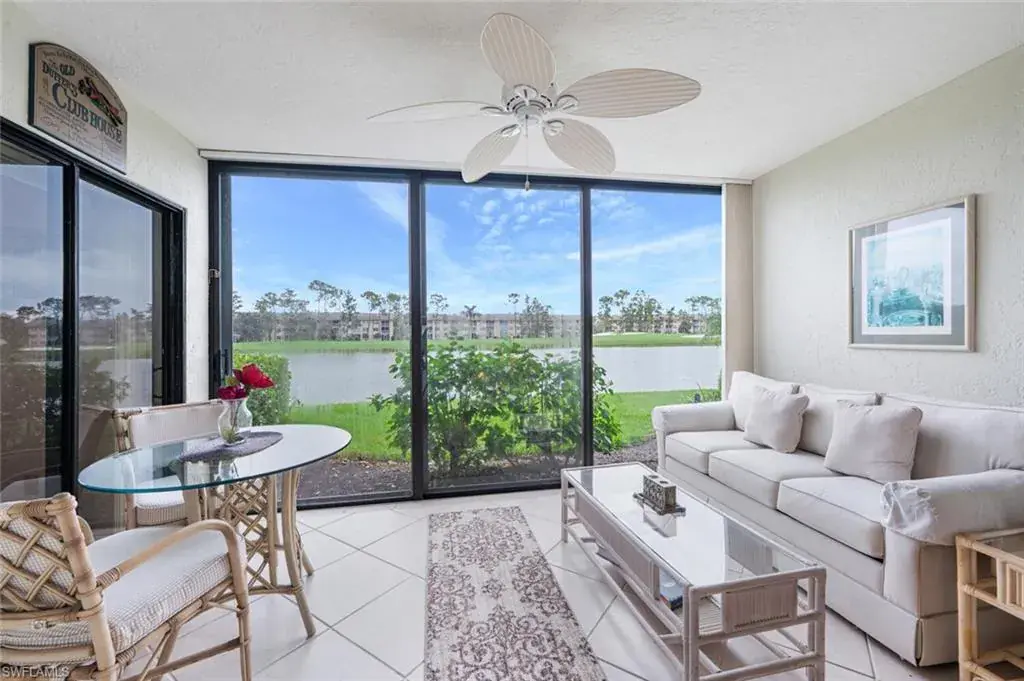This is the one! Highly sought after first floor condo in Country Manor overlooking water to the fourth hole. This two bed two bath condo with fully enclosed lanai with sliders that open for fresh air offers extra living space for the Buyers who want a little extra room while enjoying some really majestic views. Fully furnished and ready to move into. Kitchen offers granite countertops and the master bathroom has an updated pivoting shower door. Real wood floors throughout the living area. Satellite pool close by. Come and see what everyone is talking about with Countryside’s brand newly renovated clubhouse and a resort style pool the envy of other bundled golf communities. Golf, tennis, bocce, pickleball, fitness center with classes, indoor and outdoor dining, and a resort style pool with bar area and dining…Countryside has everything you are searching for. All this and so close to Fifth Avenue and the beaches.