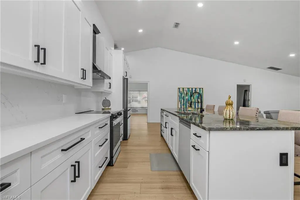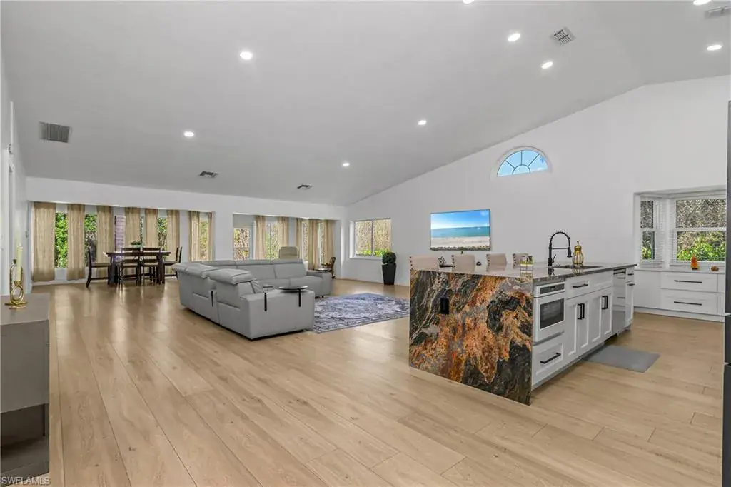 WOW!! WHAT A HOME! Walk right in to this bright, modern, and totally renovated 3 bedroom, 3 bath home home at the newly remodeled Countryside Golf and Country Club. With full golf privileges built into the sale of this home, this home boasts an expanded living area with an open concept kitchen, a large living room/dining room combination and a large and bright bonus family room with space for great entertaining and comfortable living. In addition to the 3 bedrooms, there is an additional work/hobby, storage room off of the family room. Luxurious vinyl plank flooring is offered throughout, and an additional walk-in pantry/combination laundry room with extra cabinetry is off of the kitchen. The large kitchen island with granite countertops seats 4 , while quartz countertops complete the rest of the kitchen counter space. This home is located on a preserve for extra privacy and has a generator that remains with the home to keep you safe and comfortable during a storm. I addition to county water, this home has a well which waters the yard on a regular basis.