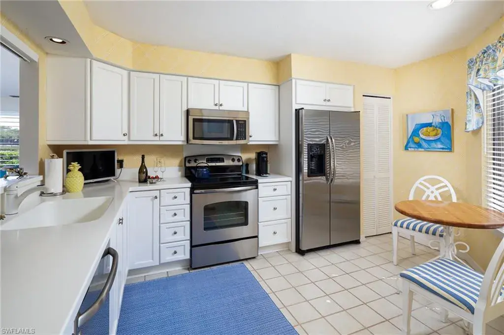 steel appliances, updated cabinetry, and smooth Corian countertops with generous prep space.