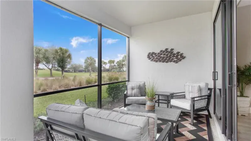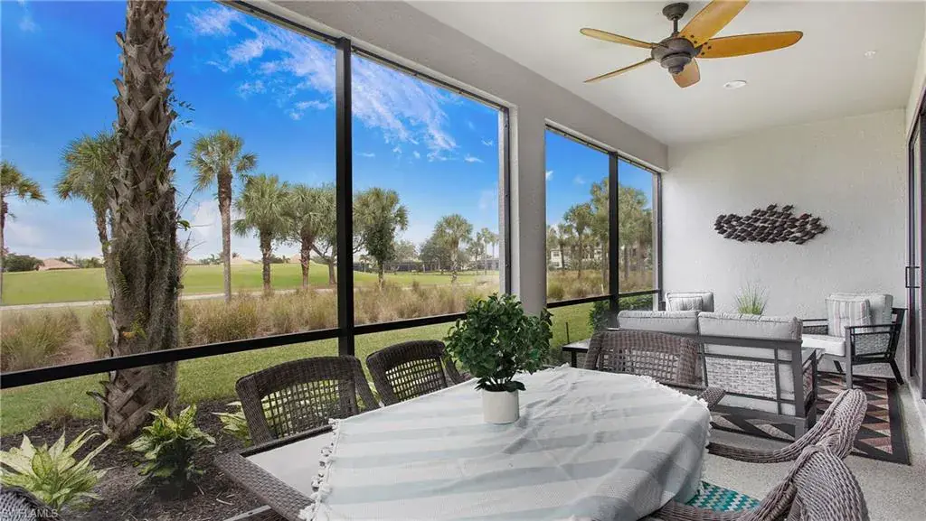 Outside, the extended screened lanai offers the ideal setting for enjoying Florida’s warm evenings while taking in the peaceful vistas of the golf course. Whether sipping your morning coffee or enjoying sunset cocktails, this space will become your personal oasis.