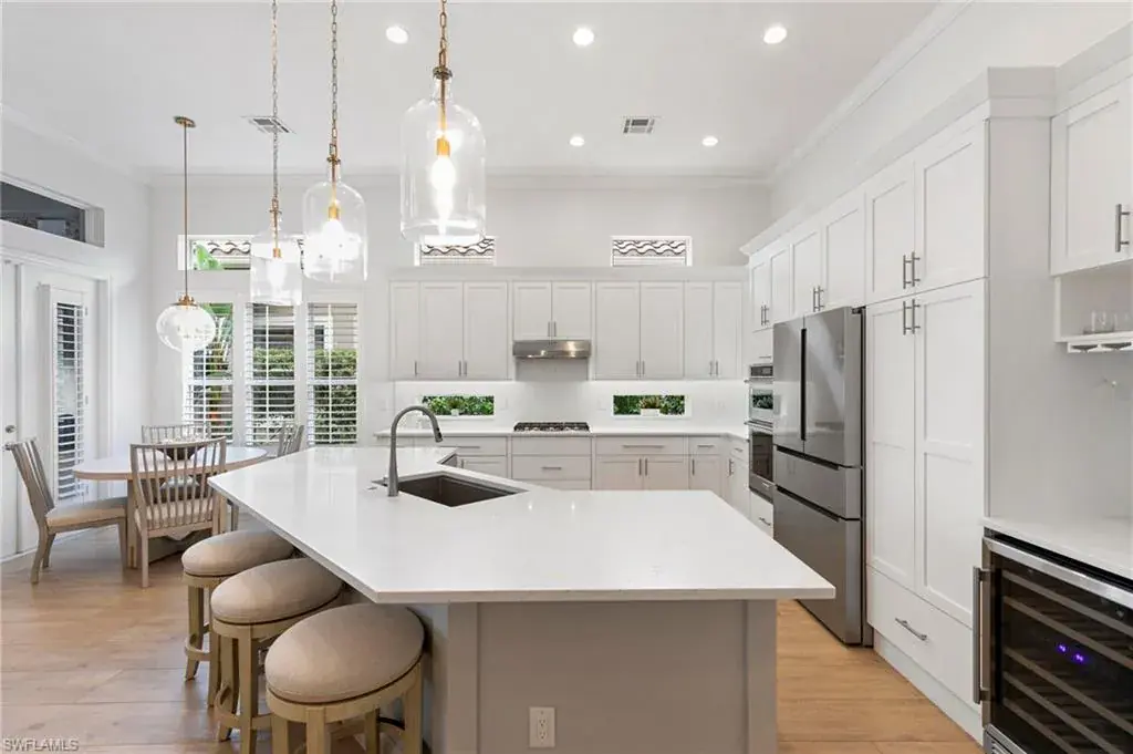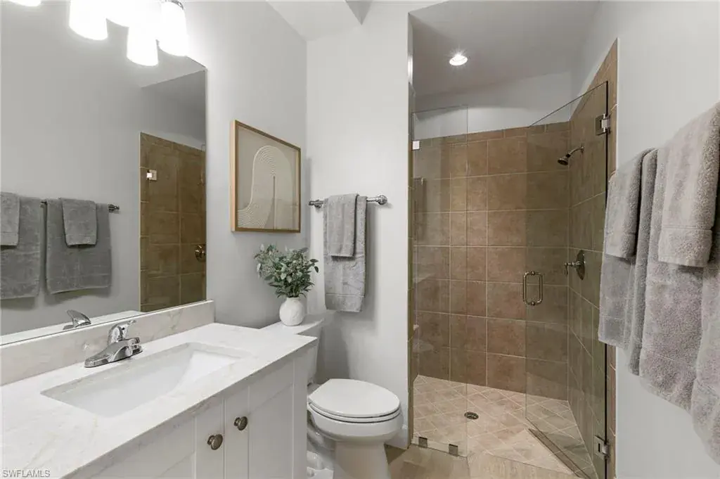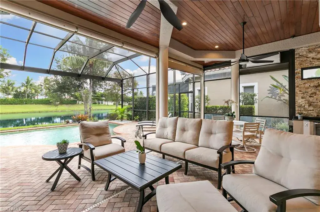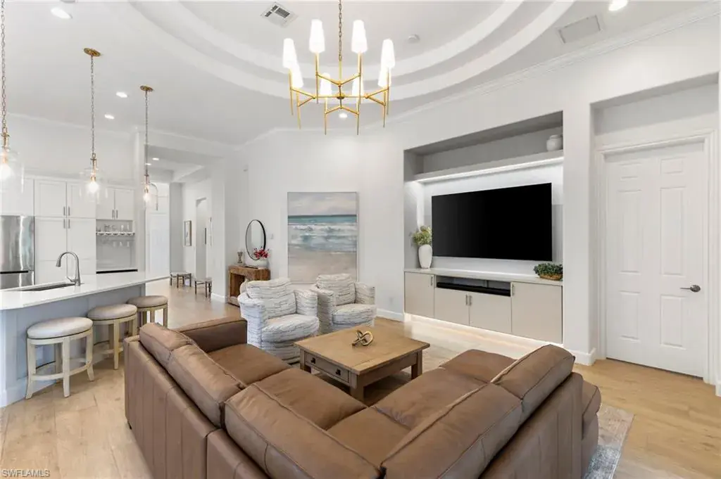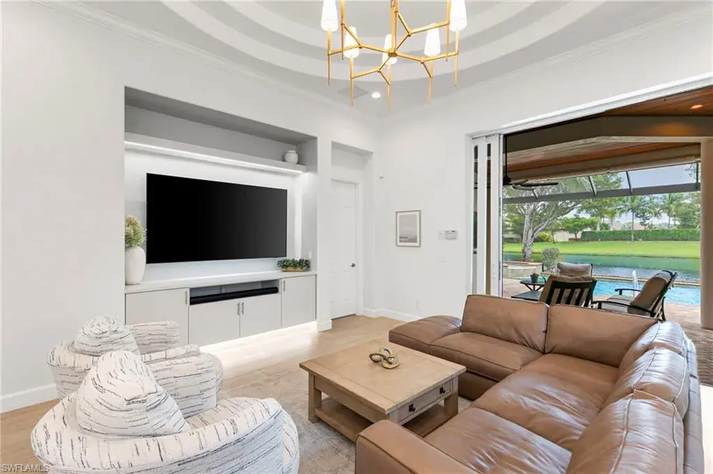 Gulf Bay’s Primrose model offers refined living in the prestigious community of Fiddler’s Creek. This thoughtfully designed and renovated home features 3 bedrooms, 2 bathrooms, and a home office or den space—all crafted for comfort, style, and effortless entertaining. The home’s striking exterior showcases a classic terra-cotta style roof, rich wood garage door, and a turret-inspired architectural feature. The welcoming entry courtyard sets an elegant first impression. Inside, the foyer opens to a bright, airy interior with wood-look tile flooring throughout and statement lighting fixtures that draw your eyes toward the soaring ceilings, enhancing the sense of space. Natural light fills the home through well-placed accent windows, sliders and French doors. At the heart of the residence, the open-concept great room, renovated to include a stylish built-in with ambient lighting, seamlessly flows into a chef-inspired kitchen equipped with white quartz countertops, remodeled shaker cabinetry, stainless steel appliances, and a natural gas cooktop. The oversized island with bar stool seating, kitchenette and dry bar offer the perfect gathering space for everyday meals or entertaining guests. The den, with French doors granting access to the courtyard, offers flexibility for use as a home office, craft room, or reading retreat. Step through the zero-degree sliders, onto the lanai, and take in tranquil creek views through a panoramic screen enclosure. Designed for year-round enjoyment, the outdoor space includes a cypress wood ceiling, full summer kitchen, and a private pool and spa—your own personal oasis.The primary suite is a peaceful retreat with dual walk-in closets and a versatile sitting area, perfect for a desk or reading nook. The spa-inspired ensuite bath features premium finishes, including a euro-glass shower with pebble mosaic tile, a separate soaking tub, a dual vanity with quartz countertops and white cabinetry, and modern lighting fixtures. Additional features include a Generac whole-house generator, tankless water heater, garage AC, automatic storm screens, and an epoxied garage floor. This home effortlessly combines luxury, functionality, and natural beauty in one of Naples’ most sought-after communities. Debt service portion of CDD PAID IN FULL. The award-winning, resort style community of Fiddler’s Creek is enhanced by a club and spa, fitness center, swimming pools, two golf courses, tennis courts, pickleball courts, a bocce court, fine and casual dining, social activities, and miles of biking and walking paths. Optional beach club and marina memberships are available. Experience the epitome of luxury living, where every detail is thoughtfully curated to complement your lifestyle.