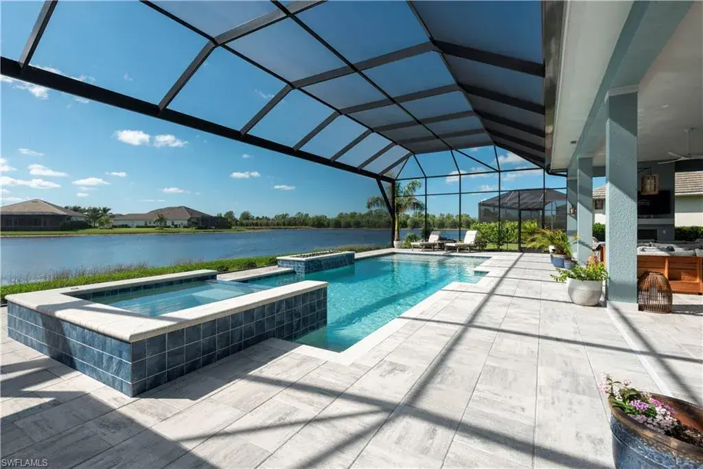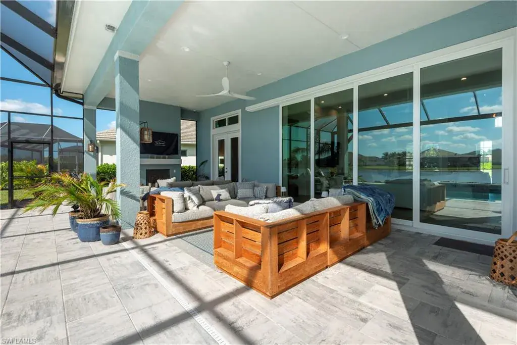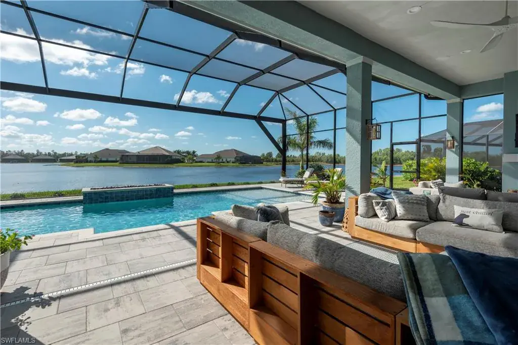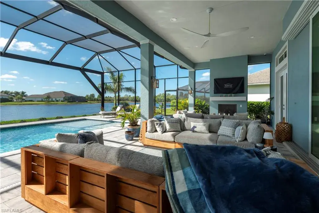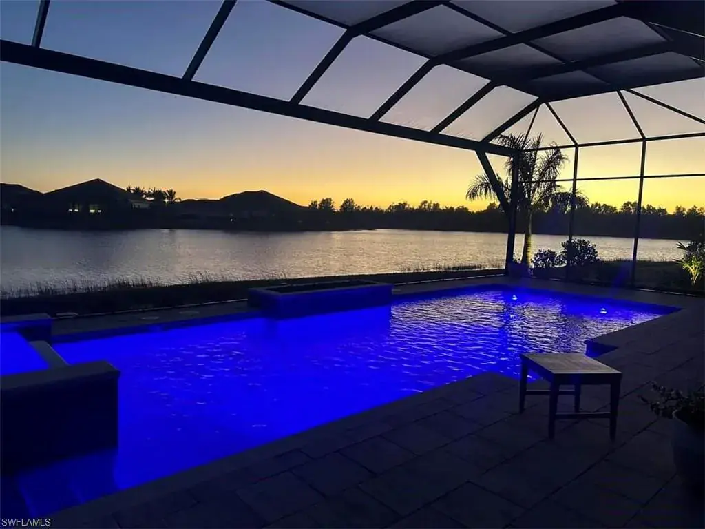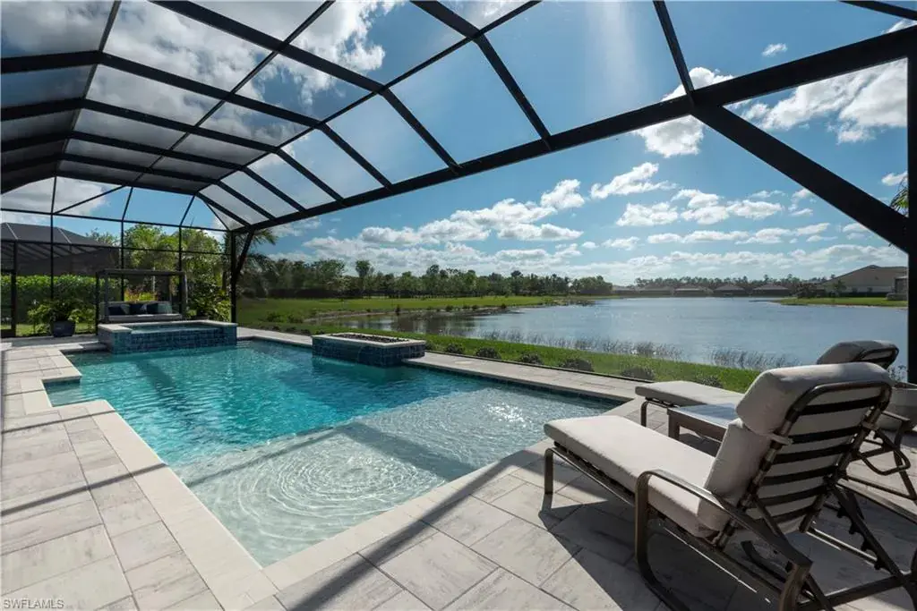Discover the ultimate in luxury living with this stunning property in Naples Reserve. This 3-bedroom, 3-bathroom masterpiece, complete with a spacious den and 3-car garage, offers the finest features and unparalleled craftsmanship throughout. Step into a world of elegance where breathtaking lake views steal the show. The homes outdoor space is truly spectacular. An expansive screened in lanai encloses the sparkling pool and two fire features with sliding pocket doors creating a seamless indoor-outdoor living experience. The vast area is perfect for entertaining or relaxing while enjoying the serenity of the most peaceful and private lake view in the community. Thanks to the rear southern exposure, the outdoor space is in natural sunlight all day. Inside, the home is equally impressive with a modern open-concept layout, high-end finishes, a gourmet kitchen, a thoughtfully designed living spaces that seamlessly blends comfort and sophistication. Thinking ahead, the plumbing and electrical connections are in place with a 500 gallon buried tank already installed for your future outdoor kitchen. Another bonus this property is eligible to have your own boat dock. This desirable community is minutes to the beach, shopping, 5th avenue, restaurants & boating. Amenities consist of a clubhouse with lagoon-style pool, beach, fire pit, Tiki Bar, volleyball, fitness center, restaurant, tennis & pickleball courts, bocce ball, playground, boat ramp, 2 dog parks, miles of trails to walk/bike/jog, kayaks, paddle boats, Kids Cove, garden & its own Kontiki Island.