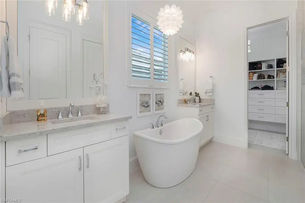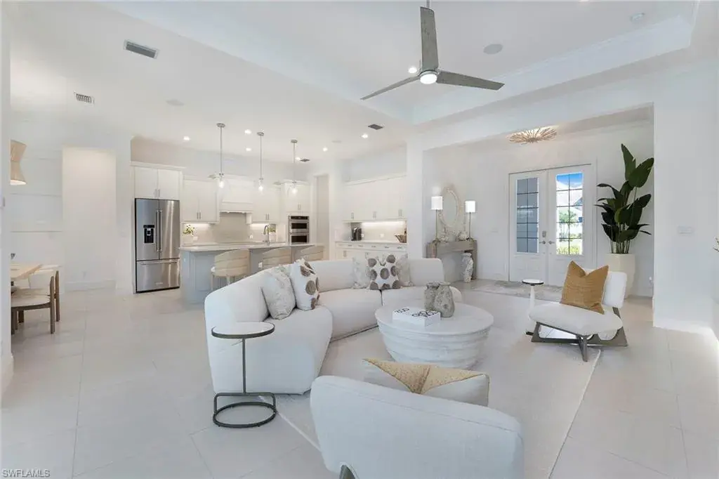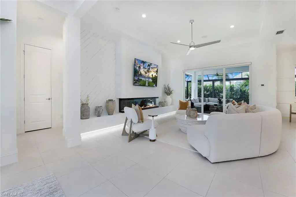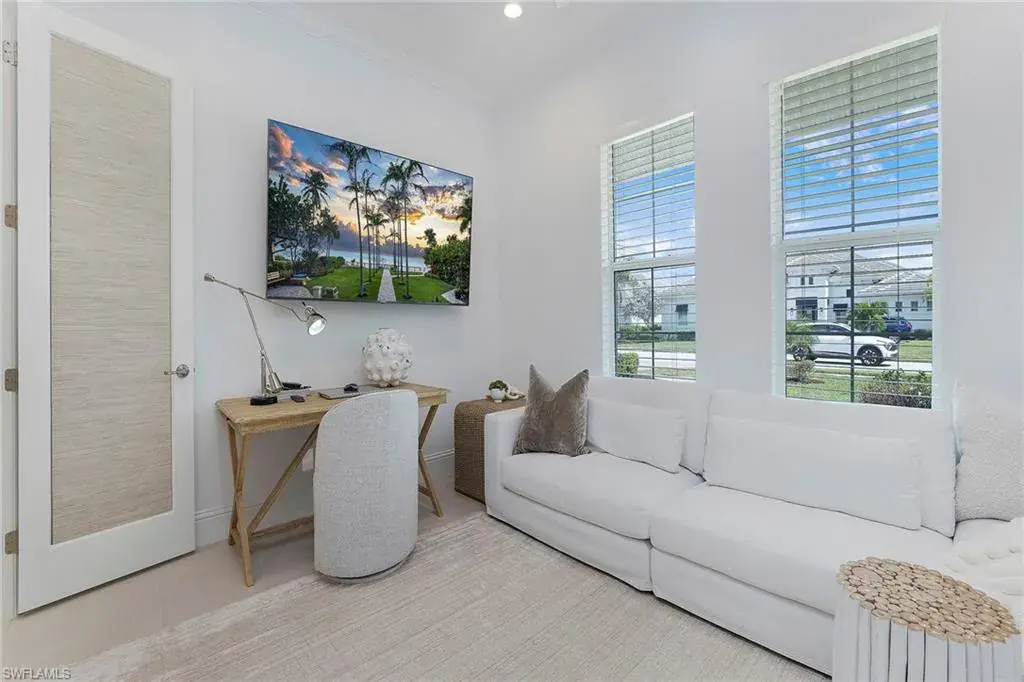 This stunning Stock Development-built, three-bedroom plus den Siesta III residence captures the essence of refined coastal living with elegant finishes, thoughtful upgrades, and serene indoor-outdoor flow. In the prestigious Crane Point neighborhood of Naples Reserve, this home blends architectural excellence with a contemporary sense of comfort. Upon entry, volume ceilings, abundant natural light, and new interior and exterior paint create a bright and inviting ambiance. The open-concept great room features a custom feature wall that becomes the visual centerpiece of the space, while designer lighting, new fans, and Hunter Douglas window treatments enhance both style and functionality. The gourmet kitchen caters to the culinary enthusiast with premium cabinetry, quartz surfaces, an induction cooktop, and a spacious island that invites gathering and conversation. Every detail reflects intentional design, from the seamless integration of a Sonos whole-home sound system to the impact glass windows and doors that bring peace of mind and quiet luxury. The primary suite offers a tranquil retreat, with direct access to the lanai and a spa-inspired bath that includes dual vanities, a floating soaking tub, a separate glass-enclosed shower, and a custom-designed closet system that maximizes organization and elegance. Designed for entertaining and relaxation alike, the outdoor living area extends the home’s living space with a heated saltwater pool and infinity-edge spa, complemented by an outdoor kitchen ideal for alfresco dining. Storm Smart electric roll-down screens create effortless comfort and protection, allowing year-round enjoyment of the lanai’s private, resort-like setting. Additional highlights include a three-car garage with epoxy flooring, abundant storage and pristine landscaping that enhances curb appeal. In Naples Reserve, residents enjoy a world of amenities, including pickleball and Har-Tru tennis courts, a cutting-edge fitness center, scenic recreational and biking trails, and a 125-acre lake with kayaking, paddleboarding, and lakeside recreation. The renovated clubhouse and restaurant, anticipated for completion in 2026, will further elevate the community’s social and lifestyle offerings. This is more than a home, it’s a lifestyle of comfort, sophistication and connection, where every day feels like a vacation in paradise.