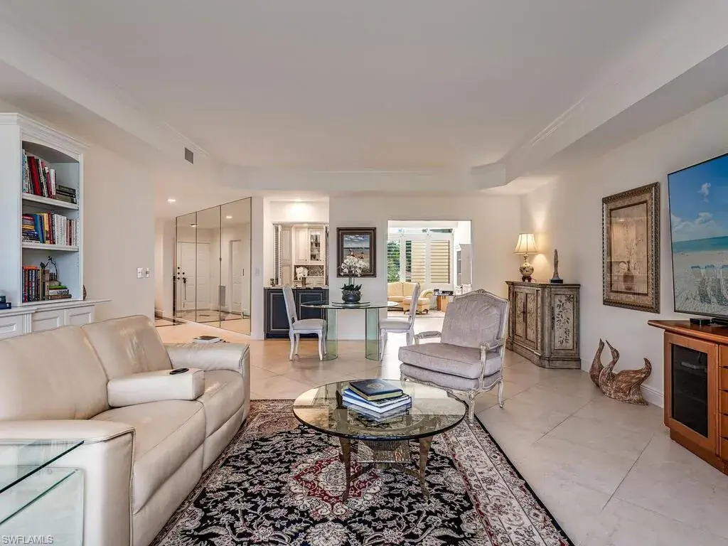 Steeped with natural light and beautifully updated throughout, this 2-Bedroom + Den/Flex, 2.5-Bath residence is perfectly situated within The Crescent at Pelican Bay, one of Naples’ most sought-after communities. A bright, open-concept layout create an inviting atmosphere with gorgeous views from each room. Porcelain tile flooring throughout flows seamlessly through the spacious living areas, connecting effortlessly to an enclosed lanai—expanding the living space and providing the perfect setting for entertaining or enjoying the lush tropical surroundings and vibrant southwestern sunsets. The thoughtful split-bedroom floor plan ensures privacy for both owners and guests. The owner’s suite offers a luxurious retreat with a large walk-in closet, additional linen storage, and a spa-inspired bathroom with a walk-in shower and separate soaking tub. The guest suite is equally impressive, featuring its own private bath, walk-in closet, balcony, and storm protection. A conveniently located powder room serves visitors with ease. Just off the kitchen, a versatile den provides flexible space for a home office or can be converted into a third bedroom if desired. The kitchen is a standout, showcasing Level 5 granite countertops, custom cabinetry, premium appliances, and full-height cabinets for ample storage and a polished, contemporary look. Additional highlights include 9-foot ceilings, impact-resistant sliders, storm shutters, abundant natural light, and a rare oversized two-car garage located only steps from the elevator, complete with epoxy flooring, a dehumidifier, and a cedar-lined storage closet. With only two residences per floor, the property offers exceptional privacy and a boutique atmosphere. Elevated 12 feet above sea level and never impacted by storm surge, this home offers both elegance and peace of mind. As a resident of Pelican Bay, you’ll enjoy exclusive access to all its premier amenities, including 2 PRIVATE BEACHFRONT restaurants/bars, attended beach service, kayaks, paddle boards, 18 Har-Tru tennis courts, fitness center, pickleball coming soon, and scenic nature trails for walking and biking. Perfectly situated near Artis Naples, Waterside Shops, and Mercato, this residence provides unparalleled convenience to world-class shopping, dining, and entertainment options.