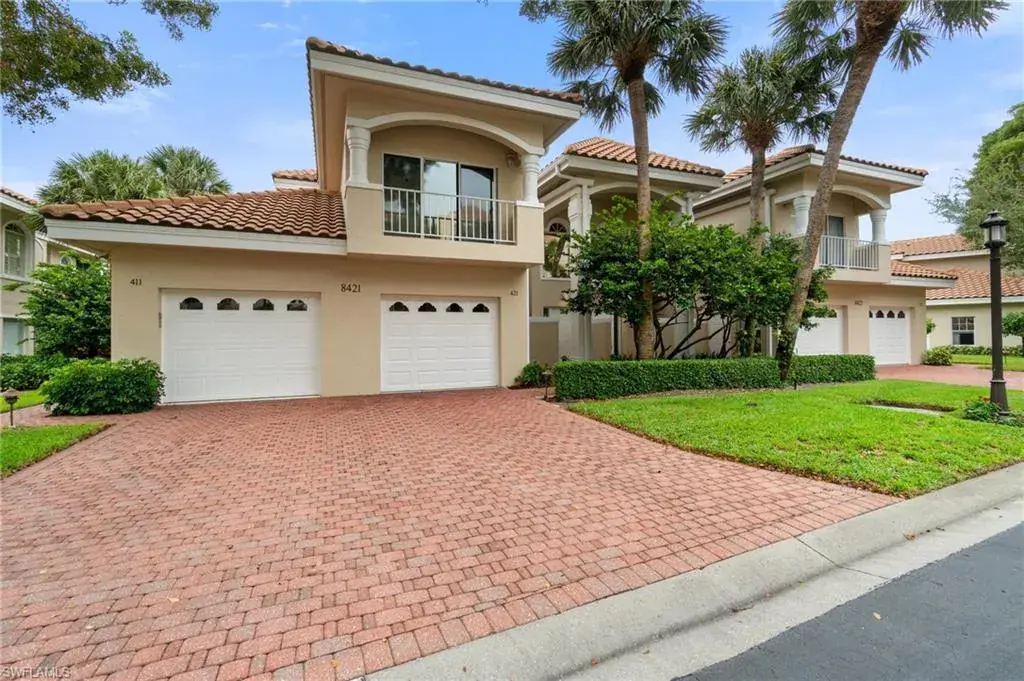 Nestled within prestigious Pelican Bay, this delightful coach home boasts 3 bedrooms and 3 baths. Inside, high ceilings and an open living area create a welcoming ambiance. Lake views grace the living area, primary bedroom, and screened lanai. Convenience and storage come via the attached garage.