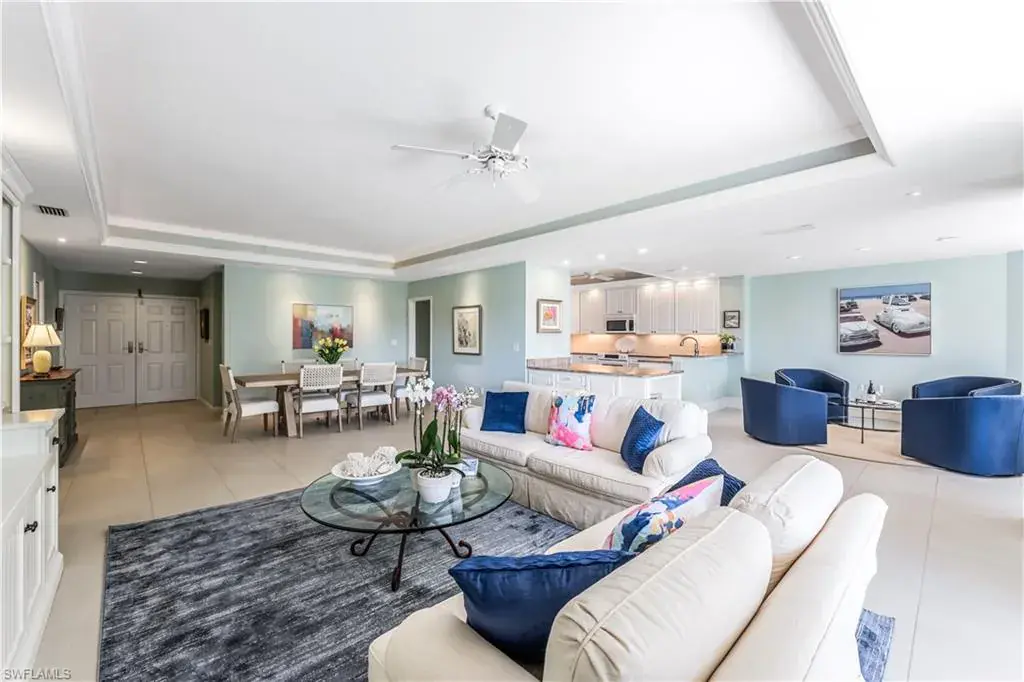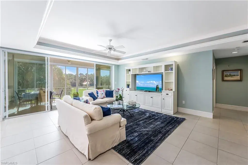 C12351. Sparkling lake and golf course views from this beautiful three bedroom, three bath condominium home. Large screened lanai with southeastern exposure. Off the kitchen area is a flex space that could be a family room, den, or large dining space. Nice and open, bright and cheery! Crown moldings, tray ceilings, and Plantation shutters are just a few of the extras. Two ensuite bedrooms, both with walk-in closets, and open up to a nice private balcony. Spacious owner’s suite has room for a sitting area, bath with beautiful granite counter tops, and a walk-in closet with built-ins. Private oversized two car garage, within a secured garage. Conveniently located across from the lobby. The Crescent is a gated community, close to all the wonderful Pelican Bay amenities – tennis, beach access and restaurants, and the community center with fitness and spa. Within the Crescent there is a pool, hot tub, clubhouse with both social and exercise rooms.