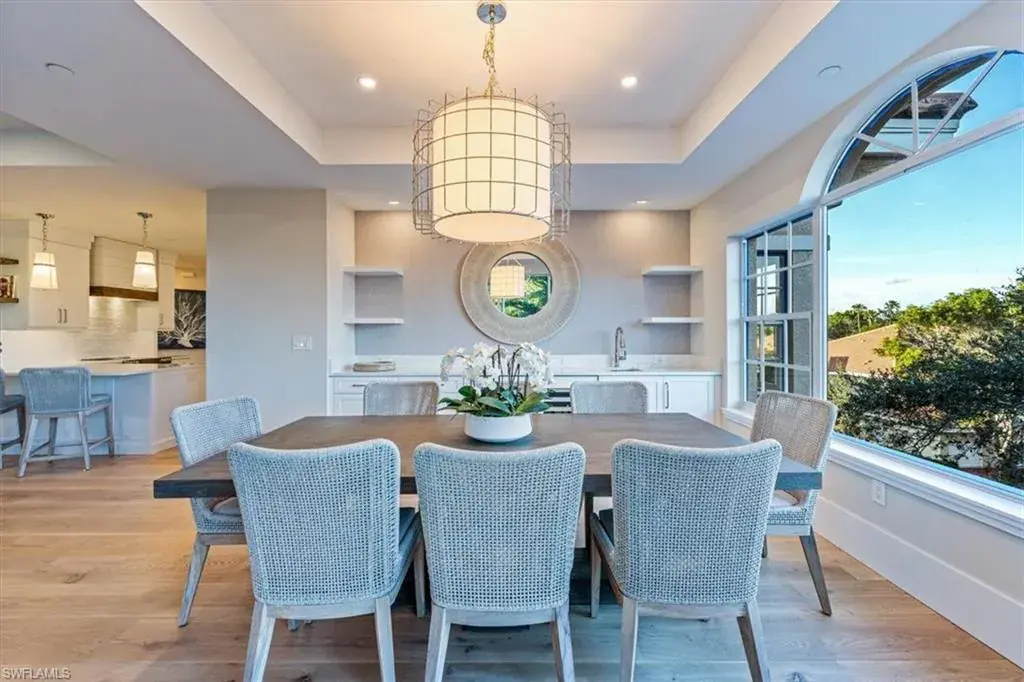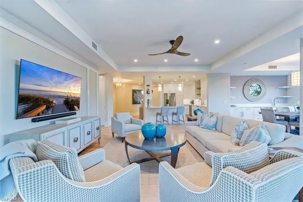 C8992 – This Completely remastered and remodeled golf course view condo is designer furnished and move-in ready! New features throughout the unit include 10’ ceilings, wide-plank hardwood floors, quartz countertops, recessed and decorative LED light fixtures, ceiling fans, plumbing fixtures, solid interior doors and hardware, 10” base trim, frameless glass shower enclosures, and 1Gig fiber internet with wi-fi boosters. The owners’ suite boasts a sitting area/workspace, 65” TV. The bright and spacious owners bath boosts dual vanities, make-up vanity, free standing tub and dream walk-in custom closet. The VIP guest suite offers a huge closet, separate sitting area with TV, and bathroom featuring dual vanities and a walk-in shower. The kitchen, open to the great room and golf-course views, features a Kitchen aid appliance package with a microwave drawer and custom range hood. The generously sized dining room accommodates 8 and makes hosting a breeze with a built-in buffet and wet bar that includes refrigerator drawers and an under-counter wine refrigerator. An expanded laundry room with folding counter and full-wall storage is conveniently accessible from the owners’ suite.