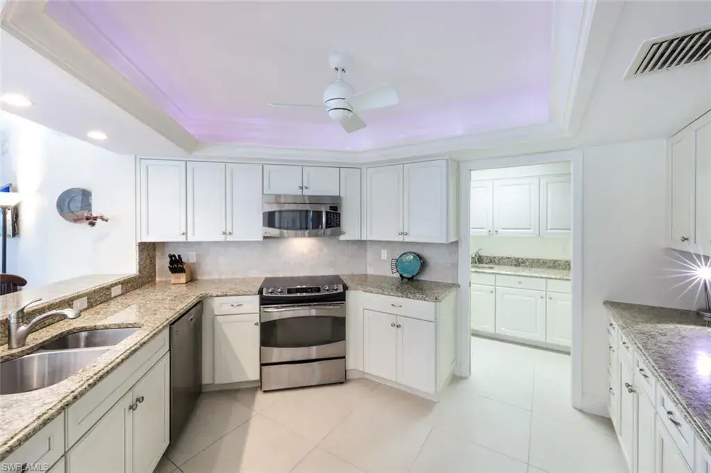 In addition, turnkey furnishings create a seamless transition and as they say, “just bring your toothbrush.” Bright and spacious floorplan has 9 ft ceilings, 24″ tile throughout living area and bedrooms, soft close cabinets with granite counters, stainless appliances, large laundry room, plantation shutters, and crown molding. The Primary bath contains two custom closets and spa like private shower with multiple shower heads. A serene water view with a water feature viewed from the lanai is the perfect place for morning coffee or sunset glass of wine. 3 full bedrooms and 2 full baths and a one car garage on the first floor is a most desirable configuration. Put on your flip flops and skip over to the sunny community pool and spa. The Crescent at Pelican Bay provides easy walking access to the North tram station and close proximity to the PB community center with tennis courts and fitness and soon pickleball. Enjoy all of the wonderful amenities of Pelican Bay…. beaches with attendants, restaurants, bike and jogging paths, kayak rentals and of course world class entertainment at Artis Naples and great shopping at Waterside shops. It doesn’t get any better than this for an outstanding Florida Lifestyle.