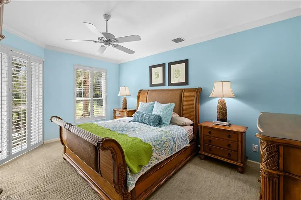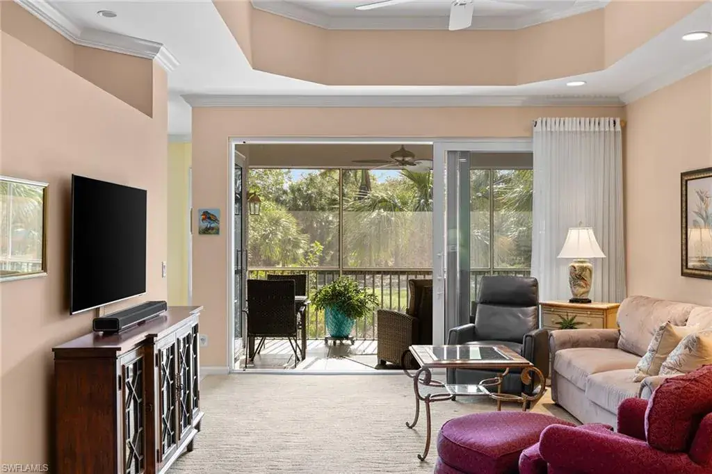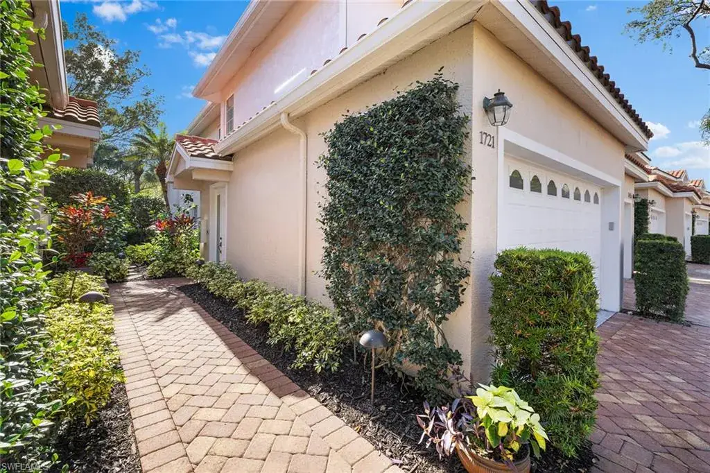 Desired Covington Row in the Crescent in Pelican Bay. Second-floor unit. Well-positioned in Covington Row for privacy, peaceful nature and golf course views. Highest-quality hurricane windows and sliding doors by PGT Premiere Vue. New Lennox air conditioner, handler and thermostat in August 2024, includes a transferable warranty. New duct system in 2020. New roof in 2021. Split bedroom and bath floor plan provide privacy for guests. Crescent clubhouse available for private events. Well-equipped fitness center. Community pool and spa. Enjoy all the Pelican Bay beach, restaurants and community center amenities.