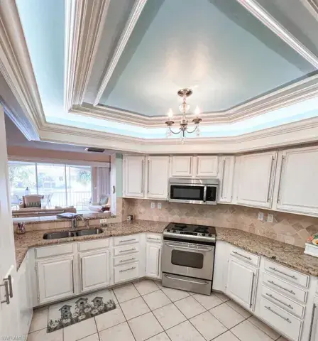 Tucked away inside The Crescent at Pelican Bay, you will find this turnkey furnished home that balances elegant design, privacy, and spectacular Southern views. This home exudes poise with a grand entryway featuring a newly carpeted stairwell and high ceilings. The layout of this carriage home lives like a single family with two guest bedrooms, a guest bathroom, and family room found on the East wing of the home and the kitchen, dining room, great room and master suite located on the West wing. Custom window treatments can be found throughout .The kitchen has been updated with recessed tray lighting detailed with crown molding, a dimmable chandelier, stunning granite countertops, new cabinet hardware, a built in pantry with floor to ceiling pull out shelves great for storage, and new stainless steel appliances in the past 5 years. The three balconies found off the great room, family room, and guest bedroom provide individual outdoor living spaces for tranquil time alone or a space to come together. . Other upgrades to the unit include new fans in the bedrooms, new water heater installed in 2018, includes an electrostatic air filter.
