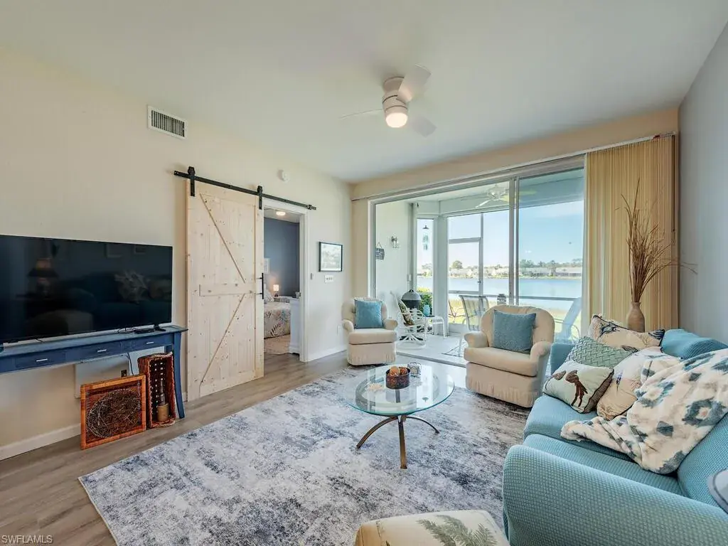 WOW- This 1st floor 3BR/2BA condo has a MILLION Dollar view overlooking a lake with westerly exposure. Watch the most beautiful sunsets from your screened-in lanai…or just watch the wildlife. It is in move-in condition and has a coastal/farm- house flair and offered turnkey furnished. Quartz countertops, California style closet in all bedrooms, hurricane shutters (electric and manual). Brand new water heater. A new roof and gutters were installed in November 2024.The unit is in walking distance to the great amenities Crown Pointe has to offer: Clubhouse, fitness center, community pool, sauna, tennis and pickleball and billiard table. Crown Pointe is conveniently located, just 4 miles from the white beached Naples has to offer and 5th Ave. South with all the fine dining, elegant shopping and theaters. Please note remarks regarding closing date.